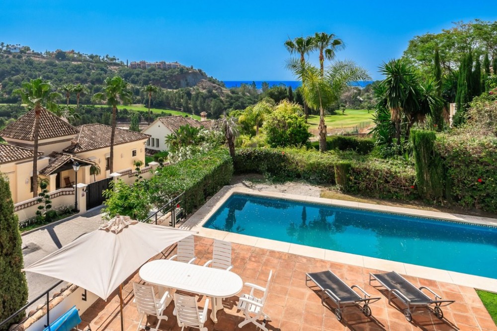 - Don't miss out on this amazing opportunity to own a unique villa in the prestigious Los Arqueros Golf community! Villa Sunrise is waiting for you to make it your dream home with just a little investment. Situated between Marbella and Benahavis, this villa is surrounded by stunning golf courses and the exclusive Los Arqueros Country Club. Enjoy great restaurants, bowling, fitness facilities, and more just a stone's throw away. Nearby commercial areas like Monte Halcones and San Pedro Alcantara offer all the amenities you need within a short drive. Step inside this Andalusian style villa and be greeted by a spacious entrance hall on the street level. The living and dining area on the first floor opens up to multiple terraces, outdoor spaces, and a sparkling swimming pool. The master bedroom with an en-suite bathroom is also conveniently located on this level. With high ceilings and incredible views of the golf course and mountains, this villa is truly a gem. The upper level features two large bedrooms sharing a bathroom that can easily be divided into two en-suite baths. With an elevator connecting all three levels and a garage for two cars, this villa offers convenience and comfort. This well-maintained property is ready for some updates to make it truly shine. Contact us today to schedule a viewing and make this villa your own!