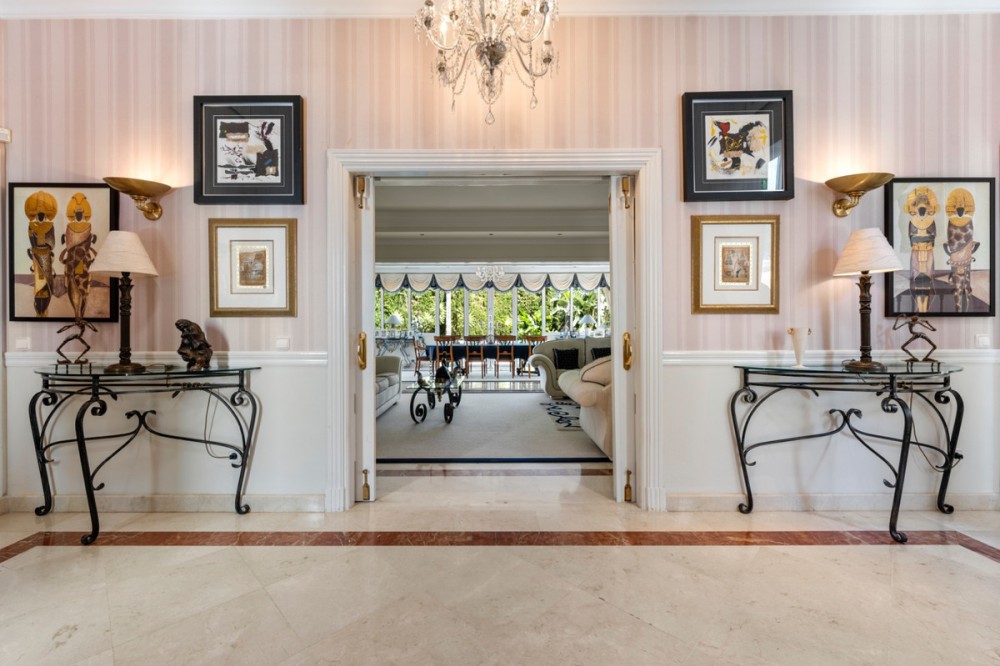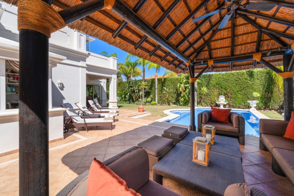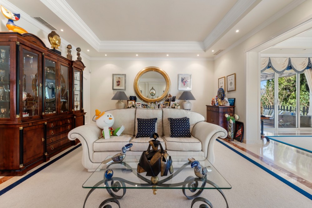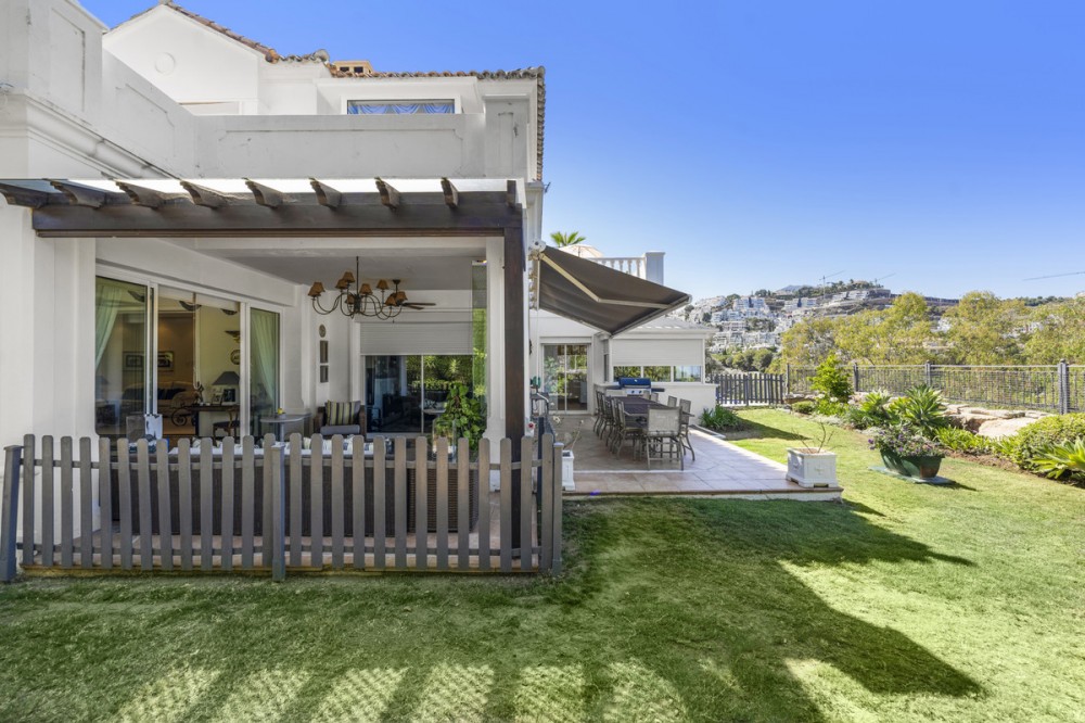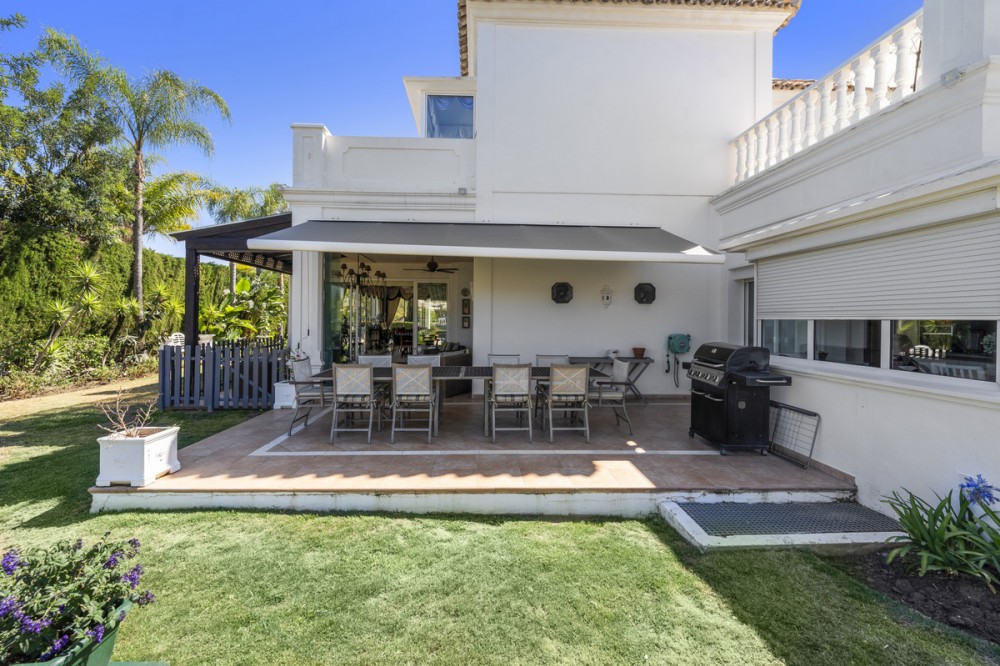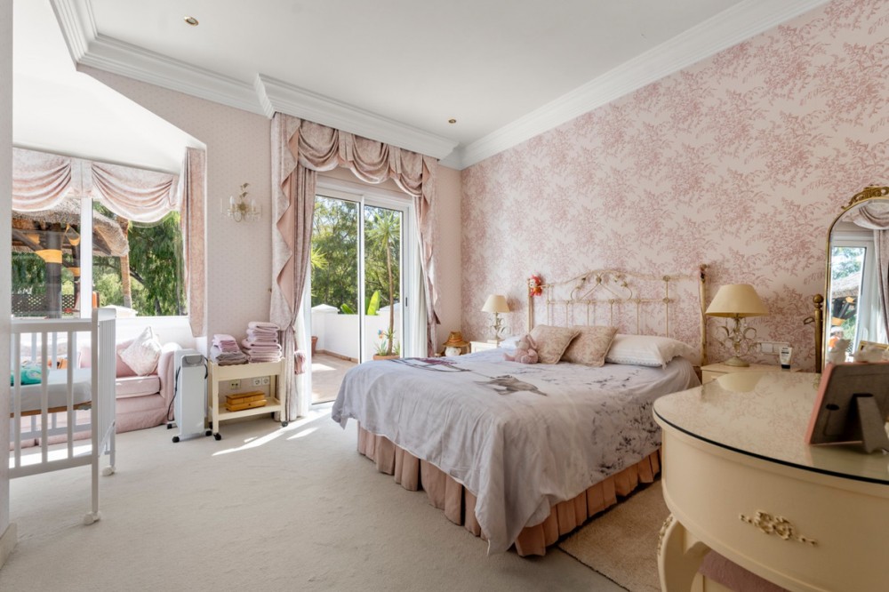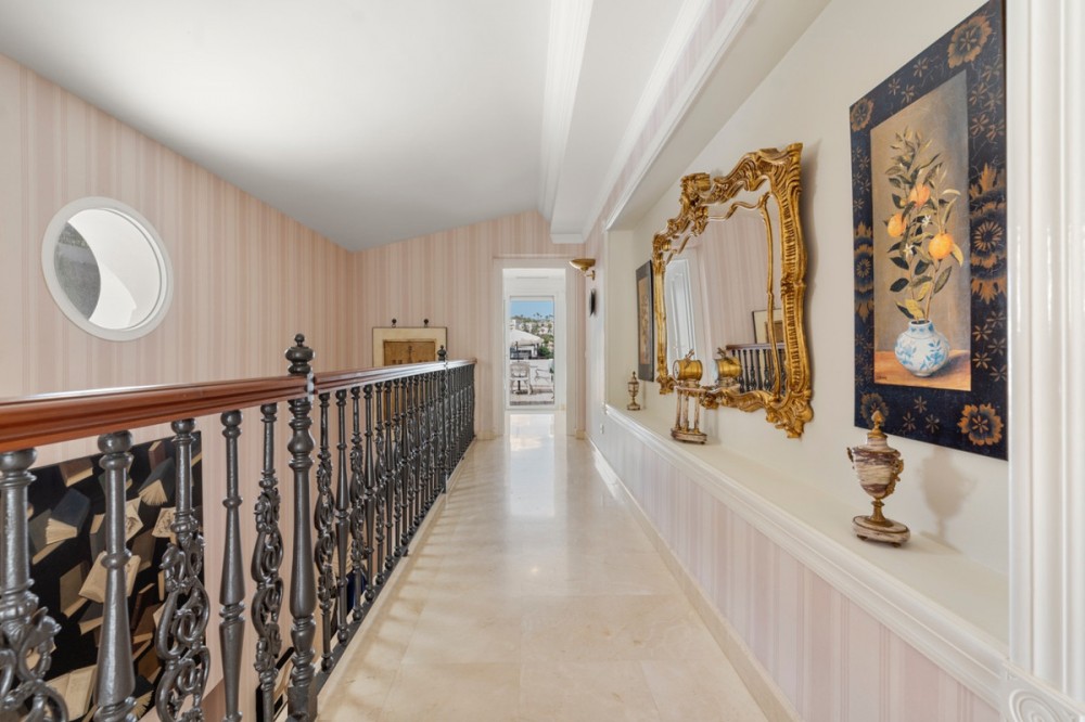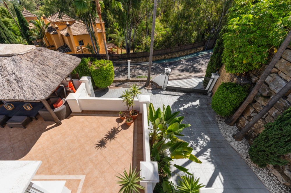 • Villa Alto sits proudly within one of the coast’s most exclusive gated communities, surrounded by a world-class golf course and protected by 24-hour security. This elegant five-bedroom villa combines privacy, space, and style across three levels, offering panoramic views of La Concha mountain and the lush golf valley. Inside, bright open spaces flow from a grand entrance hall to a spacious living and dining area with full glass doors leading to the terrace. The kitchen is modern and light-filled, designed for both cooking and entertaining. Each bedroom is generously sized and features an ensuite bathroom, with the main suite enjoying its own terrace and dressing room. Outside, landscaped gardens wrap around the villa with a large pool, shaded lounge, and outdoor dining area with barbecue. The terraces invite you to relax, dine, or simply take in the mountain and valley views. Villa Alto is a statement of refined living for those seeking comfort, security, and elegance in a prime location.