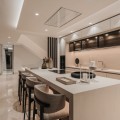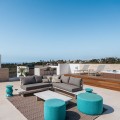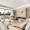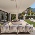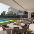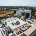 • This stunning 5-bedroom contemporary villa, located in the heart of Marbella's prestigious Golden Mile, is a masterpiece of modern luxury. Nestled within an exclusive gated community, the property offers privacy, security, and breathtaking views of the Mediterranean Sea and surrounding mountains. Designed in 2024 by a renowned local architect, the villa boasts a total built area of 1,016 m², with 630 m² of sophisticated living space. Spanning three meticulously crafted levels, this villa features interiors by a prestigious designer and is offered fully furnished. The five en-suite bedrooms serve as private retreats, each opening to expansive terraces with stunning views. On the main floor, an open-plan layout seamlessly connects the living room, dining area, and modern kitchen, all illuminated by natural light pouring in through large windows. A cozy fireplace adds warmth, while the outdoor space offers a lush garden, serene pool, and a porch terrace ideal for relaxation. The first floor houses the luxurious master suite, complete with a lavish bathroom and dressing room, as well as two additional bedrooms with terrace access. The rooftop terrace is designed for entertaining, featuring a jacuzzi, solarium, and barbecue area, all offering panoramic vistas. The lower level provides additional versatility, including an extra bedroom suite and ample space for a gym, home cinema, or games room. A three-car underground garage, advanced home automation, central heating, and air conditioning ensure year-round comfort. Located close to top-tier services and amenities, with 24-hour security, this villa offers the ultimate in luxury living on Marbella’s Golden Mile.