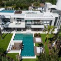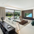- We are excited to present this fascinating modern Villa in Atalaya Rio Verde, the outskirts of Nueva Andalucia just few steps away from the renowned Puerto Banus. Atalaya Rio Verde is one of Marbella’s heritage locations, with historical Villas benefiting from enviable proximity to Puerto Banus and the beach. Properties in this neighbourhood are rarely available on the market and acquiring a brand-new Villa in this spot is definitely a fantastic opportunity. With direct access to A7 and AP7, residents are minutes away from best amenities and important destinations. The property is in a calm residential street and has La Concha Mountain as backdrop, and garden views from all rooms facing towards South. The facade is a masterpiece, commanding attention with its striking design, while the property entrance features a stunning water feature that adds to its allure. Sitting on a generous plot, the property is surrounded by meticulously landscaped gardens, providing both beauty and privacy from neighbours. The well-manicured garden is an oasis in the summer months, perfect for relaxation and outdoor enjoyment. Step onto the generous terraces, designed for alfresco dining and chill-out areas, complete with an outdoor kitchenette and BBQ for outdoor entertaining. The incredible private pool is a highlight, featuring a sunken chill-out area for added luxury and entertainment. The ground floor offers direct terrace access through floor-to-ceiling glass sliding doors, flooding the open plan living, dining, and kitchen area with natural light. The interiors are refined, exuding sophistication and comfort at every turn. The bespoke kitchen, with its deep wooden cabinets, offers both aesthetic beauty and practicality, equipped with state-of-the-art appliances and ample counter and storage space. A guest bedroom is also conveniently on the ground level. The upper level is reserved for guest suites and the master bedroom. The master bedroom steals the show with its elegant decor, direct terrace access, walk-in closet, beauty station and luxurious bathroom featuring a standalone bathtub, double vanity and walk-in shower. The lower level is dedicated to amenities, including an incredible home gym, sauna, wine bodega, and an entertainment room with a custom bar. A generous garage provides ample space for cars