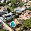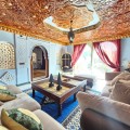 - Stunning Villa in Arabish-Andalusian Palace Style in Cala de Mijas Just 300 meters from the sea, this magnificent villa blends Andalusian Nazarí-modern design, combining luxury and tradition. Its privileged south-facing orientation ensures sunlight throughout the day, illuminating the garden and pool area. The property is accessed through a grand gate and a driveway. The villa is distributed over 3 floors plus a loft, featuring unique architectural details. Upon arrival, a small staircase leads to the pool and the main porch, offering stunning sea views. The entrance is through an impressive double door, hand-carved in mahogany, leading to a majestic 12-meter-high hall with a central patio and a marble fountain, all bathed in natural light coming through the central tower. To the left, a sliding double door opens to a large, bright double living room with sea views and windows overlooking the side garden. The high ceiling is lined with hand-carved mahogany wood, adding an artisanal touch to the space. This floor also includes a bright bedroom with garden views and a marble bathroom, perfectly equipped. On the right side of the hall, another living room with sea views connects to a spacious dining room, which leads to a modern kitchen equipped with high-end appliances and direct access to the rear garden. The upper floor offers three spacious bedrooms, two of them with access to a large terrace with panoramic sea views. The master bedroom features an en-suite bathroom with a jacuzzi and large windows providing abundant natural light. A second full bathroom also includes a jacuzzi and side windows. All carpentry is handcrafted from mahogany, and the windows are double-glazed. The lower floor offers flexible space with four additional bedrooms, perfect for conversion into a cinema room, games room, or even an independent apartment. It also includes a full bathroom and a garage with space for four cars. Located in the exclusive coastal urbanization of **Torrenueva**, this property is in the heart of Mijas' coastal area, just a short distance from the beaches and surrounded by lush forests. This enclave is known for its tranquility, international community, and excellent access to the AP7 motorway and A7 highway, allowing quick access to Málaga airport in 25 minutes, and Marbella or Puerto Banús in less than 15 minutes. Additionally, the nearby Cabopino area offers a charming marina just 10 minutes away. Torrenueva stands out for its excellent range of services, including restaurants, shops, tennis and golf clubs, as well as outdoor activities such as hiking, fishing, and diving. A unique property in an exceptional location, perfect for those seeking luxury, privacy, and proximity to the sea.