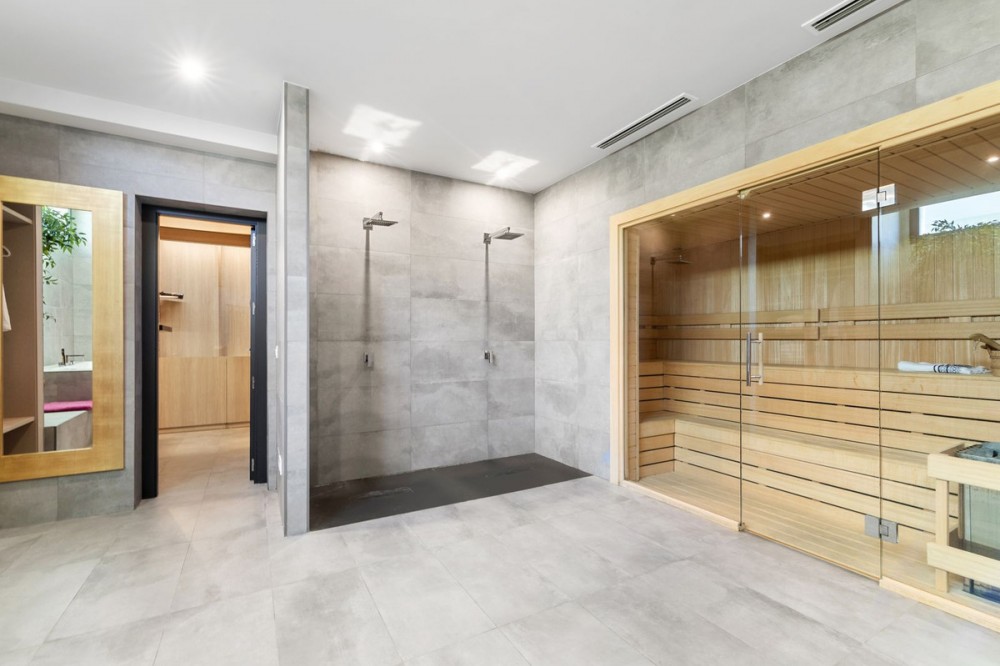 Features: covered terrace, fitted wardrobes, private terrace, solarium, sauna, games room, storage room, utility room, ensuite bathroom, marble flooring, jacuzzi, bar, double glazing, domotics, basement, fiber optic