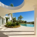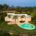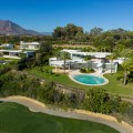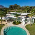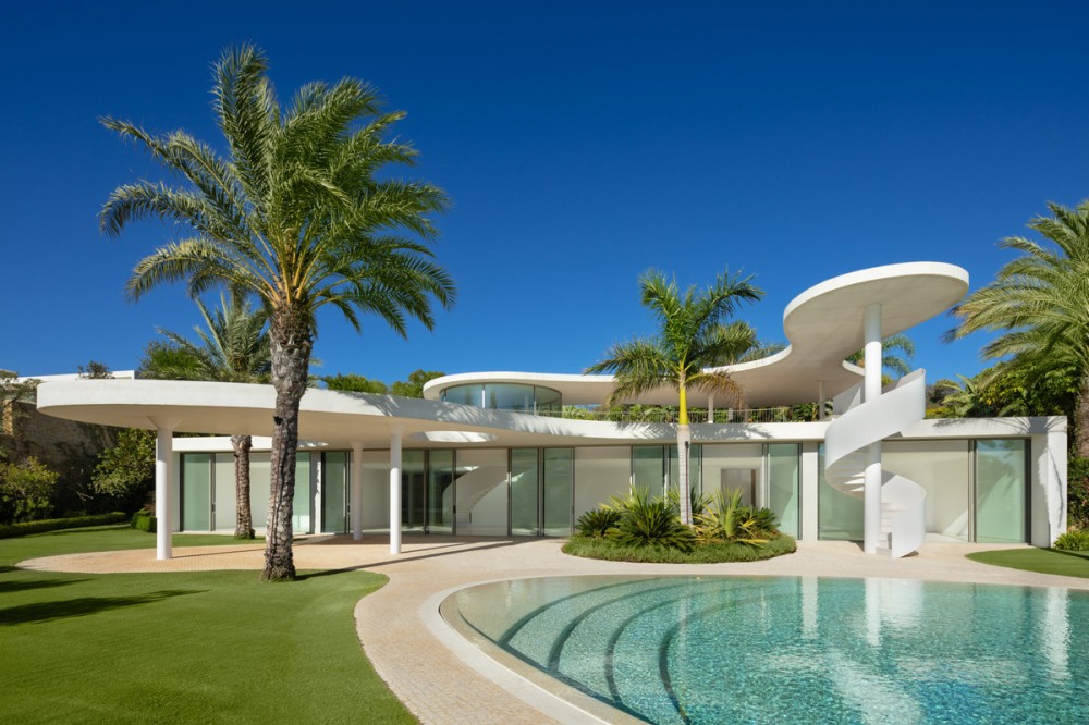- Nestled within the prestigious Finca Cortesin Resort, this villa represents an architectural landmark by combining contemporary design with timeless character. Its flowing lines and carefully studied proportions create a residence that is both striking and harmonious with its natural surroundings. The entrance sets an immediate impression with a dome-shaped structure and a bespoke spiral staircase that serves as both a functional and sculptural element. An outdoor spiral staircase also connects the upper level directly with the landscaped garden, ensuring fluid transitions between interior and exterior spaces. The ground floor hosts the main living areas, designed to integrate with the outdoors through extensive glazing and sliding doors. A fully equipped kitchen, dining area, and lounge are complemented by four bedrooms, each with distinctive character and abundant natural light. The primary suite is designed with attention to privacy and comfort, opening directly to the terrace and garden. The garden stands as a focal point of the residence, with its light blue swimming pool set against manicured lawns and framed by tall palm trees. Specially selected terrace tiles add a bespoke detail to the outdoor area, highlighting the property’s individuality. Every feature has been designed with purpose, from the layout that ensures seamless circulation to the landscaping that enhances privacy and tranquility. Large windows draw in natural light, emphasizing the connection to the greenery and the views beyond. Property Highlights: •Location within Finca Cortesin Resort •Four bedrooms including a primary suite •Custom spiral staircases, interior and exterior •Swimming pool with unique tiling •Landscaped garden with palm trees and lawn •Bespoke finishes throughout