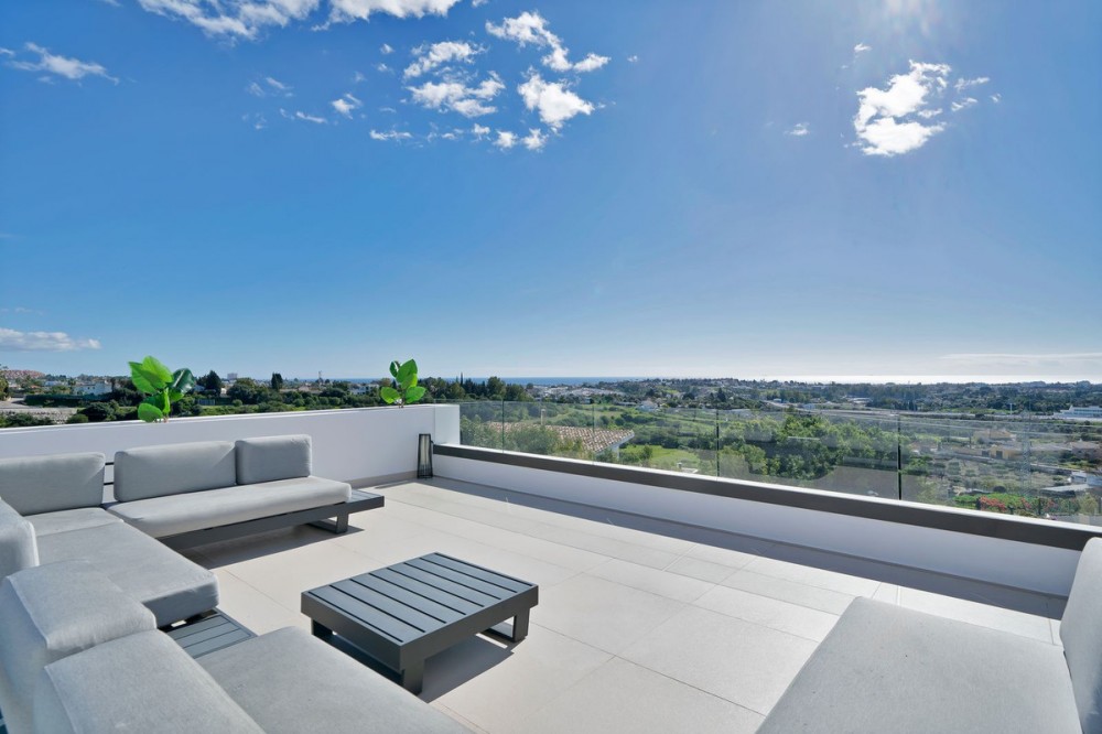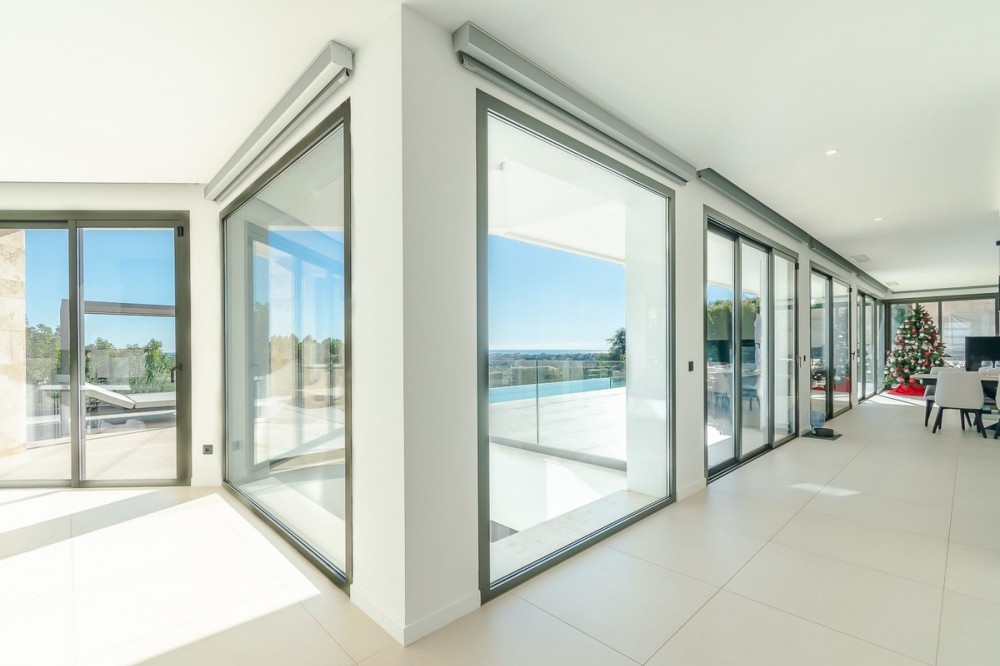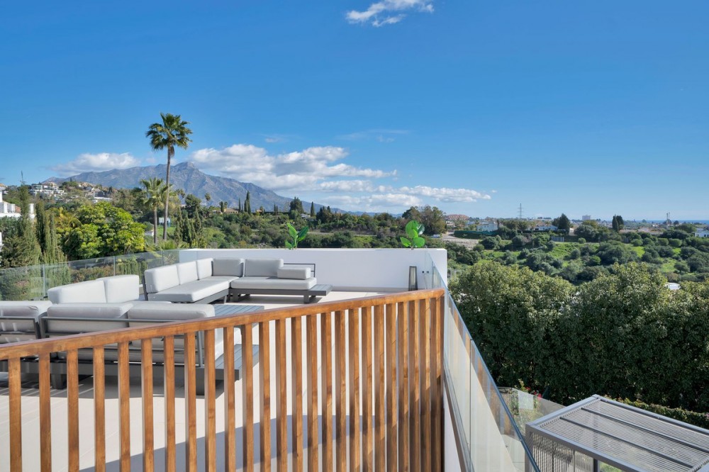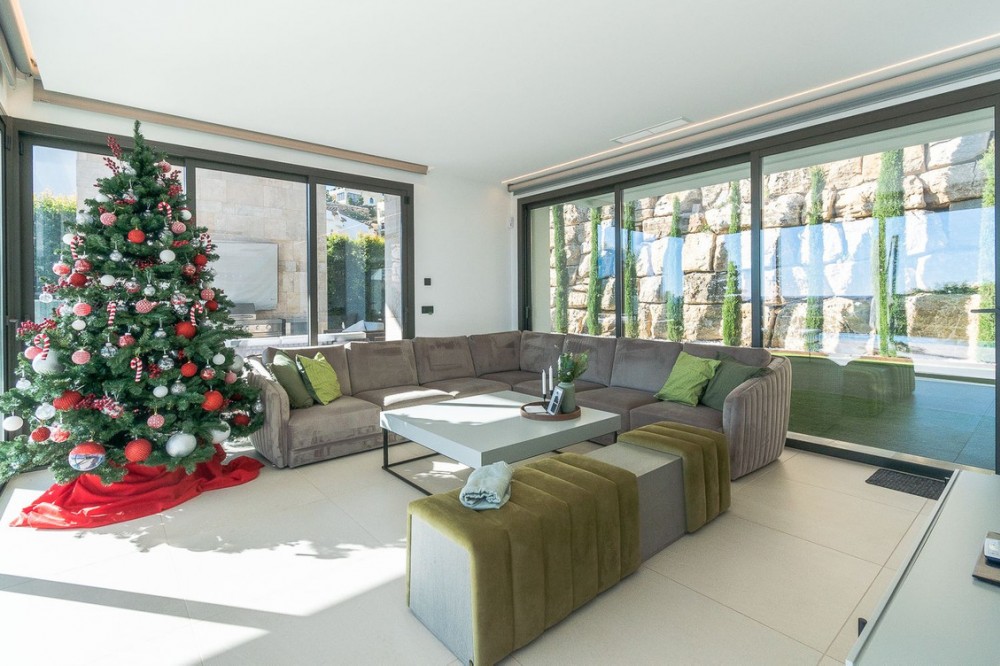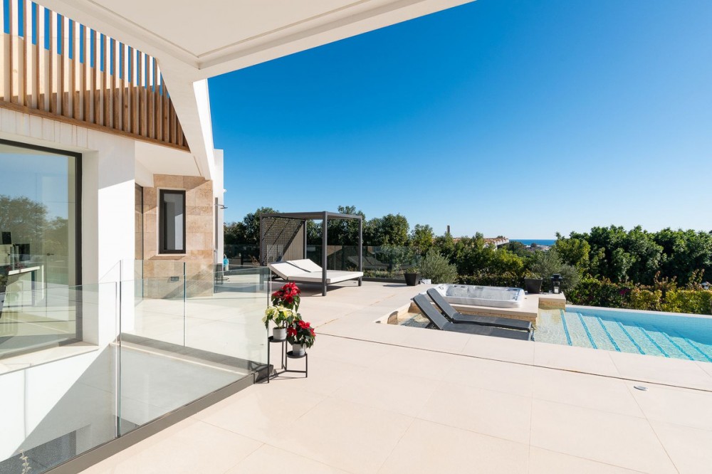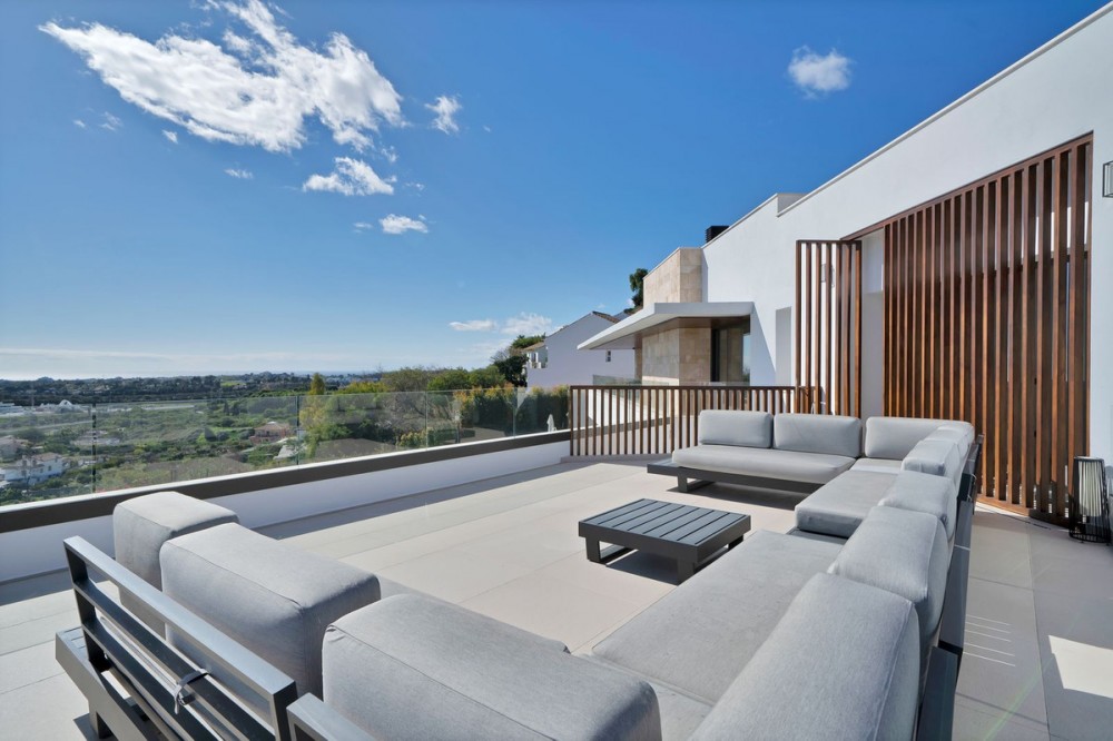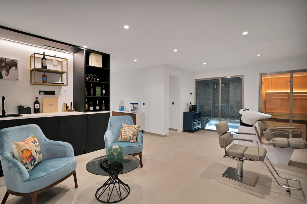 • Dream Villa for Golfers with Panoramic Views in Puerto del Almendro, Benahavís Located in the exclusive and private gated community of La Resina, in Puerto del Almendro, this stunning luxury villa has been designed and decorated with an unparalleled level of detail and sophistication. With 930 m² of built space on a 1,036 m² plot, this property represents the perfect fusion of elegance, comfort, and cutting-edge technology. Situated on one of the best plots in the area, the villa offers breathtaking 270° panoramic views of the sea and mountains, creating a unique setting of peace, privacy, and natural beauty. Additionally, it is located within a secure gated community with 24/7 security, ensuring maximum safety and tranquility. A Golfer’s Paradise Designed for golf enthusiasts, the villa features putting greens in the garden and a professional golf simulator, offering a premium experience without leaving home. Wellness and Relaxation in Every Space Luxury is evident in every detail, from the private spa, which includes a Turkish sauna and Swedish sauna, to the fully equipped gym with state-of-the-art fitness technology. Outdoors, relaxation is guaranteed with a heated jacuzzi and a stunning heated private pool, surrounded by beautifully landscaped gardens. The property also boasts a covered chill-out area with a TV, perfect for enjoying the outdoors in total comfort. Layout and Exclusive Features 3 spacious bedrooms in the main villa, each with an en-suite bathroom. Independent apartment, perfect for guests or staff, featuring 1 bedroom, 1 full bathroom, and a fully equipped kitchen. Private hair salon, offering a personal care experience at home. Indoor elevator, ensuring accessibility throughout the house. Game room, ideal for family entertainment. Functional and Versatile Spaces Indoor garage with space for 3 cars. Outdoor parking for 2 cars, which can also be used as storage or converted into an additional apartment. Solar panels, ensuring energy efficiency and sustainability. Every corner of this villa has been carefully designed with the highest quality materials, achieving the perfect balance between luxury, modernity, and comfort. If you are looking for an exclusive residence where privacy, security, and design come together in an unparalleled setting, this villa is simply one of a kind.