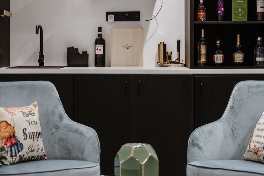 • Security: gated complex, electric blinds, entry phone, alarm system, 24 hour security, safe