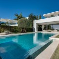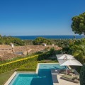 - This exceptional villa is nestled within an exclusive gated community in Marbella’s prestigious Golden Mile. Set on a generous south-facing plot, the property is bathed in natural sunlight and enjoys breathtaking panoramic sea views from both floors, creating a serene and luxurious coastal retreat. For the future owner, a brand-new high-quality kitchen from Siematic or equivalent will be included, offering the option to replace the existing one. The buyer also enjoys the exclusive opportunity to tailor the design, materials, and appliances to perfectly reflect their personal style and preferences. Designed by renowned architects Cristian Larrain K. and Rodolfo Nonini, the villa stands as a striking example of modern architectural excellence. Its crisp white façade, symmetrical lines, and lush greenery create an elegant yet inviting aesthetic. The rooftop terrace crowns the residence, offering uninterrupted sea views and iconic La Concha Mountain. The outdoor spaces are equally impressive, featuring breathtaking sea views, private pool, stylish terraces, and a meticulously landscaped garden – ideal for both relaxation and entertaining. Inside, the home exudes contemporary sophistication. The open-plan living area is enhanced by ambient ceiling lighting and a soft neutral color palette, creating a warm and welcoming atmosphere. The dining area flows seamlessly into the kitchen and social zones, making it perfectly suited for both everyday living and special occasions. A high-end indoor/outdoor sound system ensures effortless entertainment throughout. The kitchen itself is spacious, functional, and beautifully appointed, with ample storage, generous worktops, and a cozy breakfast nook. Each bedroom is a private retreat, featuring refined finishes and its own en-suite bathroom. The master suite, occupying the entire upper level, offers the ultimate in privacy and comfort, complete with walk-in closet, freestanding bathtub, double vanity, and floor-to-ceiling windows framing spectacular sea views. Further amenities include a state-of-the-art entertainment room, home cinema, wine cellar, gym, elevator, and three-car garage – all thoughtfully designed for modern luxury living. For complete peace of mind, the community provides full-time staff who oversee the maintenance of the pool and gardens. Optional property management services are also available, ensuring a truly turnkey lifestyle. This serene and secure neighborhood offers a rare balance of tranquility and convenience. While tucked away in peaceful surroundings, the villa remains within walking distance of the beach and Marbella’s vibrant Golden Mile. Residents enjoy proximity to world-class dining and lifestyle venues such as Puente Romano, Alba by Serafina, Besaya Beach, and the stylish Boho Club. This is more than a home – it is a seamless blend of elegance, comfort, and exclusivity, where every detail has been carefully curated to deliver the finest in Mediterranean living.