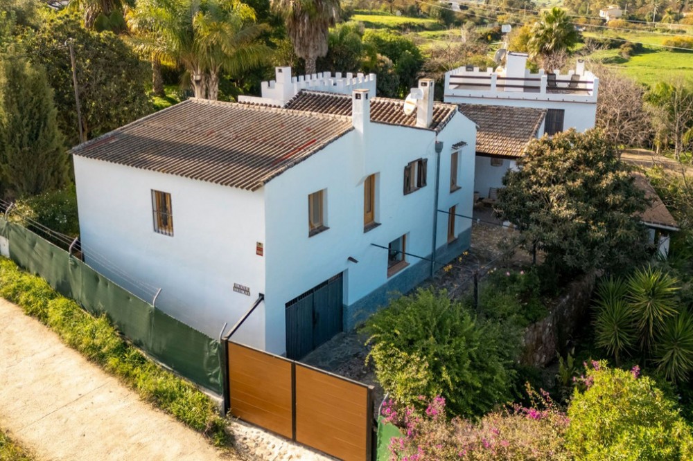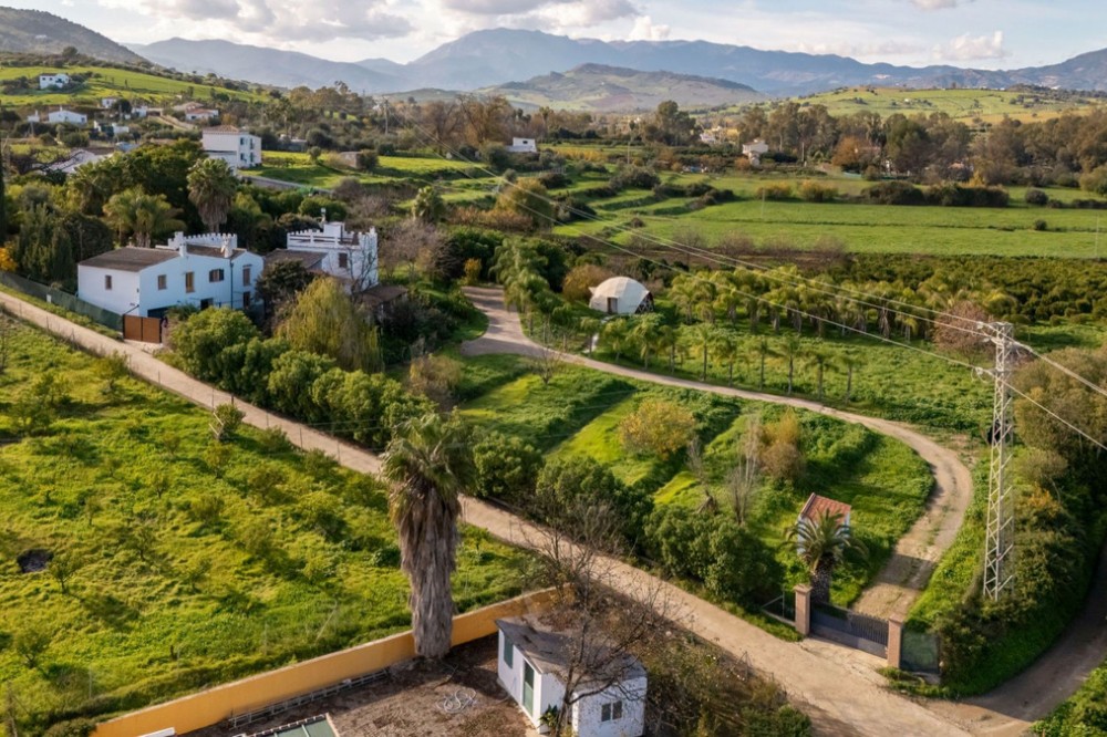 • Nestled in a picturesque countryside setting, just 7 kilometres (a 15-minute car drive) northwest of the charming village of Coín, this exquisite country estate offers a unique blend of rustic charm and modern amenities. Accessible via good roads, the last 2 kilometres transition into a quaint country lane (with some potholes), providing a true escape into nature. Set on a sprawling 11,000m2 fully fenced plot, the estate boasts: 1. Main House: - Two inviting living rooms, each with its own fireplace. - Three bedrooms, including: - A master bedroom with dressing room. - A versatile bedroom currently used as an office. - A family bathroom. - Central heating throughout (powered by a pellet burner in the garage). - Air conditioning for year-round comfort. 2. Guest House: - Fully equipped kitchen. - Cozy living room. - Two bedrooms. - Bathroom with shower. - A large open rooftop terrace with breathtaking 360º views. 3 & 4 Wooden Cabins: 3. Two-Bedroom Cabin: Located at the bottom of the plot, featuring two bedrooms and a bathroom, kitchen and living room. 4 . Poolside Cabin: An open-plan studio design with a private bathroom, perfect for guest accommodation or relaxation. Outdoor Features: - A saltwater swimming pool set in a secluded and private area offering 100% privacy. - Expansive terraces and a shaded barbecue area with a traditional bread oven. - Lush mature vegetation, including a variety of fruit and ornamental trees. - Irrigation water access, complemented by a private well for reliable water supply. Additional Amenities: - Automatic entrance gates for convenience and security. - A spacious garage with room for a vehicle and ample storage. - Gently sloping yet primarily flat terrain, ideal for various outdoor activities. Originally built in 1950, the property has been thoughtfully maintained and upgraded to provide modern comforts while retaining its authentic charm. This estate offers a perfect retreat for those seeking privacy, tranquillity, and a taste of the idyllic countryside lifestyle. Please note: The white dome on the property is not included in the sale. The Listing agent for itself and as agent for the vendor gives notice that: 1. These particulars are only a general outline for the guidance of intending purchasers and do not constitute in whole or in part an offer or a Contract. 2. Reasonable endeavours have been made to ensure that the information given in these particulars is materially correct, but any intending purchaser should satisfy themselves by inspection, searches, enquiries, and survey as to the correctness of each statement. 3. All statements in these particulars are made without responsibility on the part of Listing agent or the vendor. 4. No statement in these particulars is to be relied upon as a statement or representation of fact. 5. Neither Listing agent nor anyone in its employment or acting on its behalf has authority to make any representation or warranty in relation to this property. 6. Nothing in these particulars shall be deemed to be a statement that the property is in good repair or condition or otherwise nor that any services or facilities are in good working order. 7. Photographs may show only certain parts and aspects of the property at the time when the photographs were taken and you should rely on actual inspection. 8. No assumption should be made in respect of parts of the property not shown in photographs. 9. Any areas, measurements or distances are only approximate. 10. Any reference to alterations or use is not intended to be a statement that any necessary planning, building regulation, listed building or any other consent has been obtained. 11. Amounts quoted are exclusive of Tax if applicable.