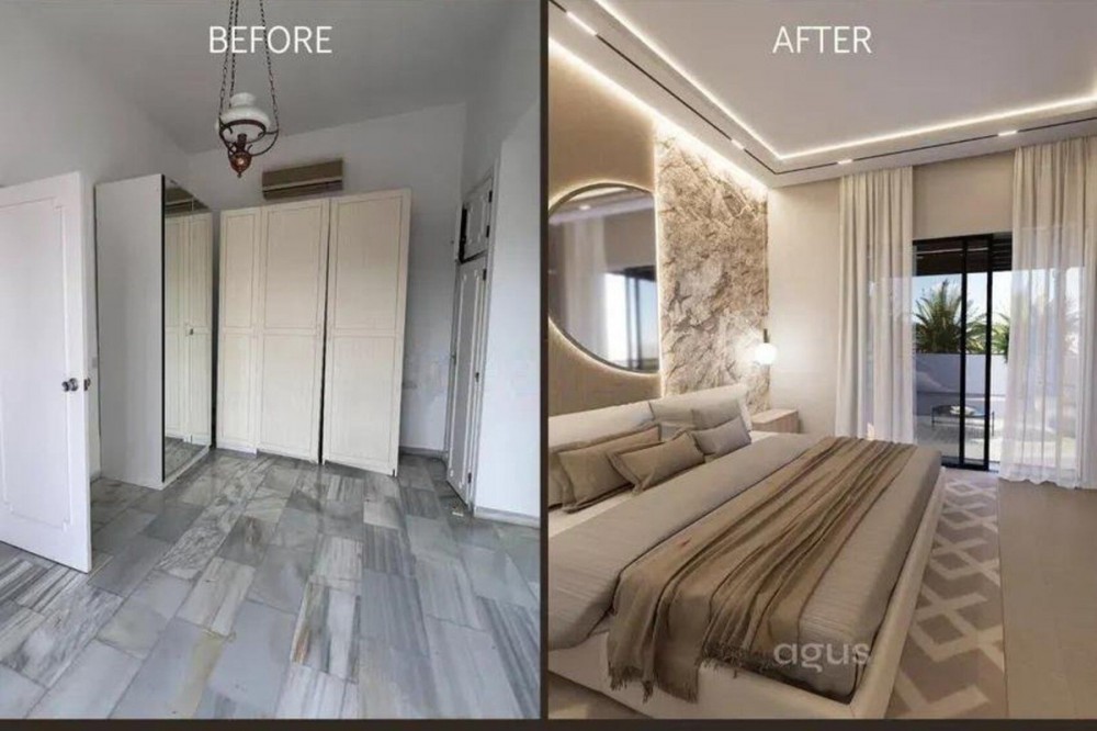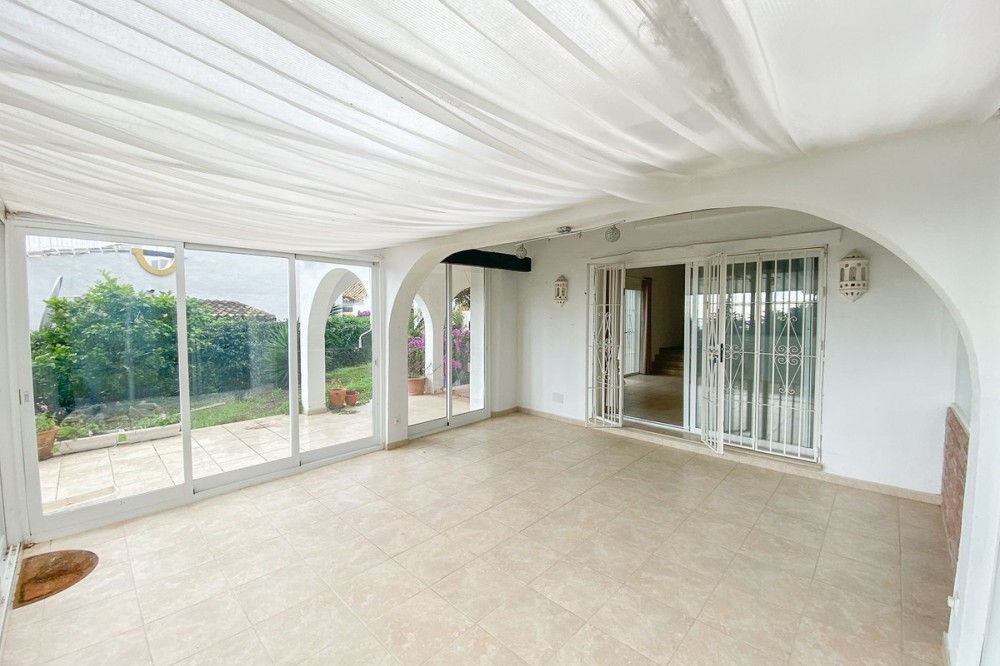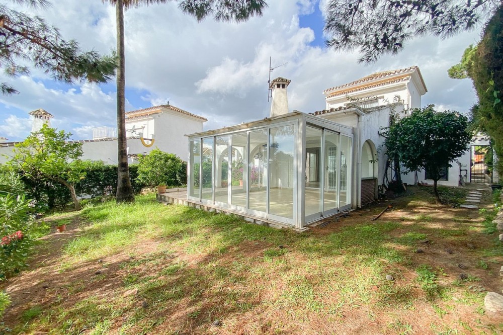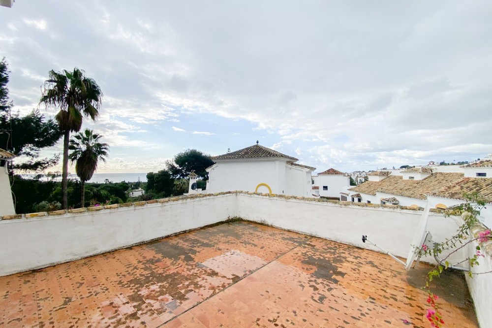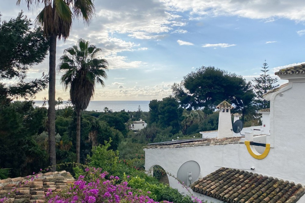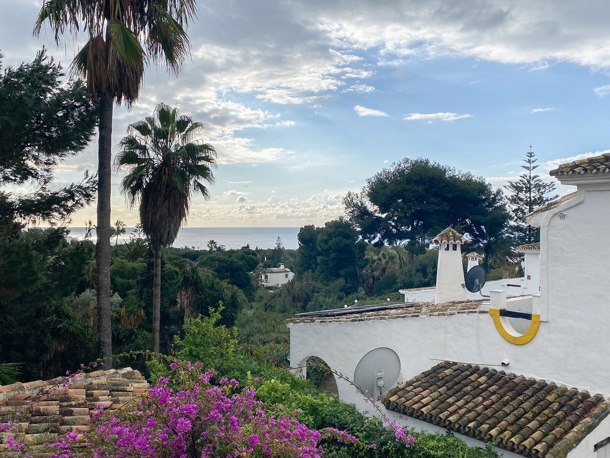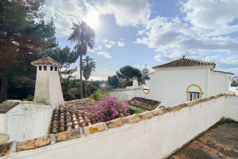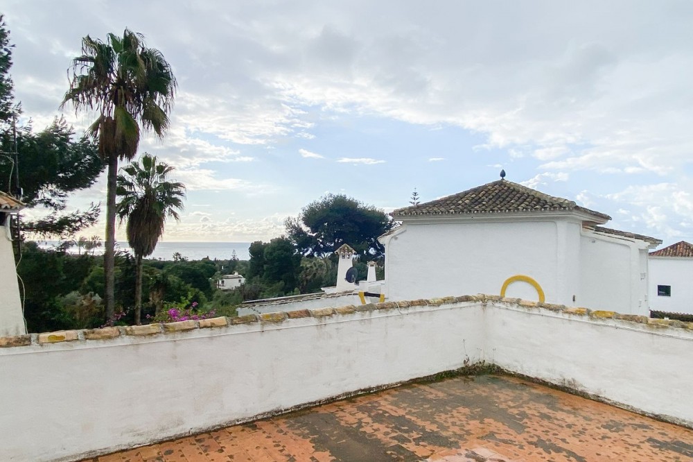 - Located in Calahonda, this detached villa offers an exceptional balance between serenity, comfort and possibilities for transformation. With beautiful sea views and great potential for redesign, this property is an ideal choice for both those looking for a family home and investors looking for unique opportunities. The property features a classic design with a spacious living room distributed on two levels and a separate kitchen. It currently has three bedrooms, all with en-suite bathrooms, and enough space to add a fourth bedroom after a renovation. Spacious terraces and a winter garden bring natural light and versatility to the living space, while the living room, with its cozy fireplace, is perfect for cooler evenings. The master bedroom is located upstairs and has a spacious bathroom and a private terrace. The entire house is equipped with air conditioning for added comfort. Outside, the garden offers generous dimensions and the possibility to build a private pool In addition, the property has parking for two vehicles right next to the house. The location on a private street guarantees privacy and tranquility. With its ample indoor and outdoor spaces, this villa is perfect both as a primary residence and for vacation getaways. Do not hesitate to ask for a viewing!