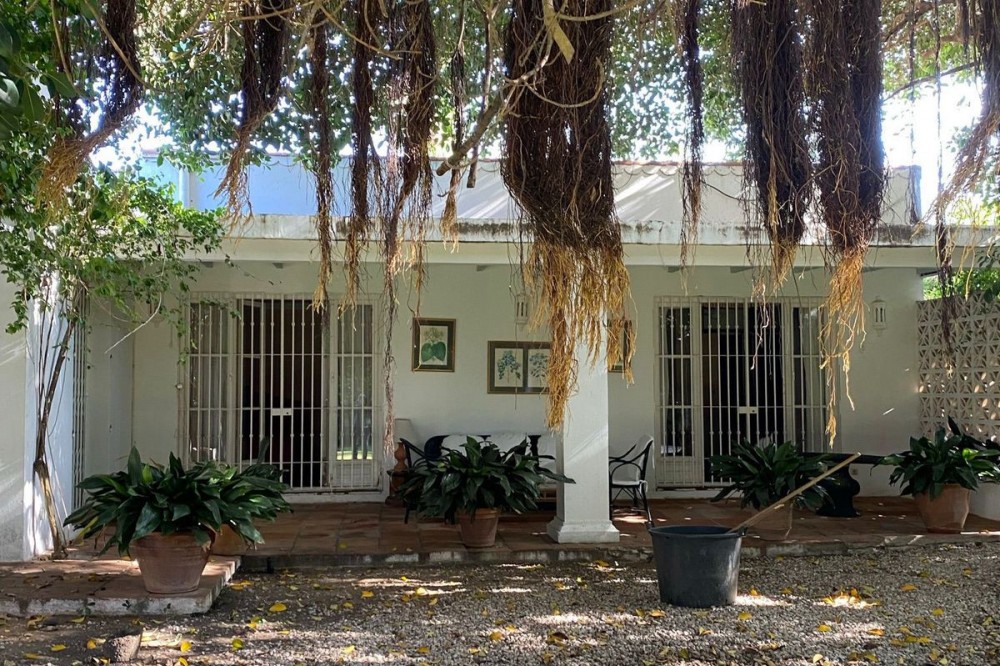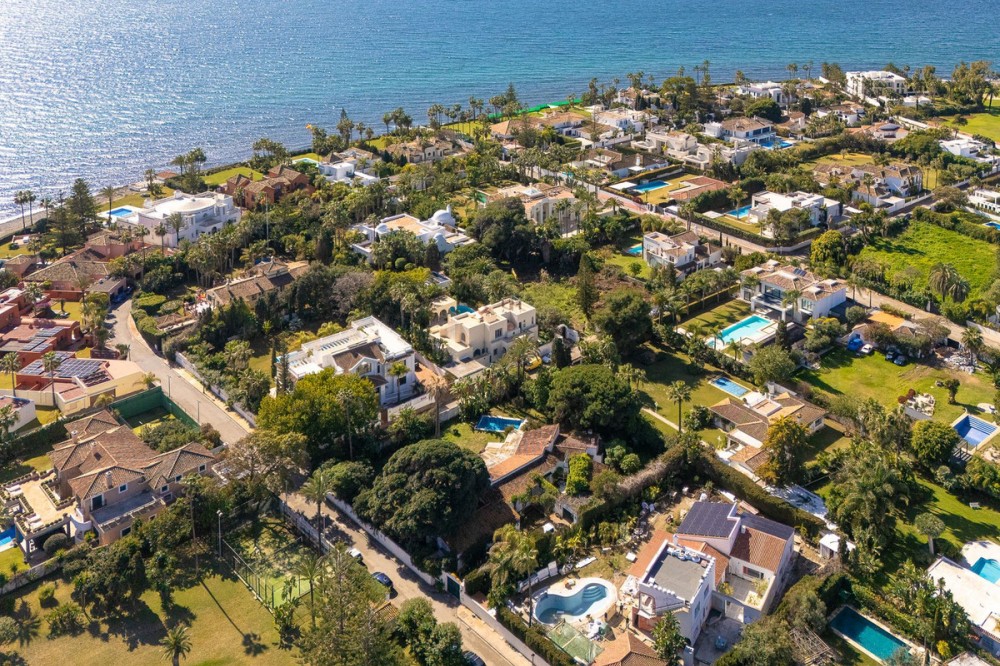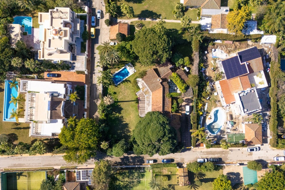- Charming Villa for Renovation in Casasola Nestled in the serene urbanization of Casasola, this independent villa offers a unique investment opportunity just a stone's throw from the pristine beaches of Guadalmina Baja, because the Villa could be extended onto a new big and modern villa or the plot could also be divided in 2 plots and buld 2 Villas, 1 in each resulting plots. Situated on a generous 2,085 m² plot, the property is perfect for those looking to embark on a renovation project and create a dream home or lucrative resale opportunity. With the potential to divide the plot and construct two separate villas, the possibilities are endless. The villa boasts a spacious 200 m² built area, featuring an entrance hall, a large living-dining room, three double bedrooms, and an office. The kitchen comes with an additional service bedroom, complemented by two bathrooms and a guest toilet. Outside, you'll find a large garden with mature trees, a private pool, and charming pergolas and covered terraces for outdoor relaxation. Located just 200-300 meters from the beach and a short drive to the Guadalmina golf course, this property combines tranquility with convenience. Whether you're looking to design a permanent residence or a holiday getaway, this villa offers endless potential in a sought-after location. Don't miss out on this fantastic investment opportunity!