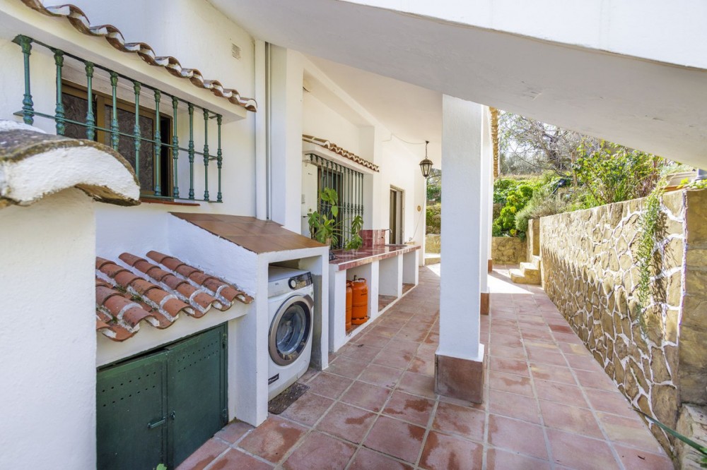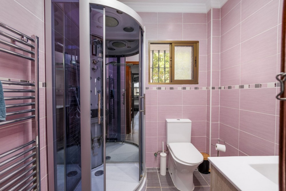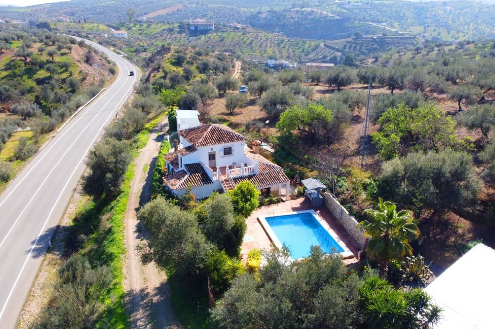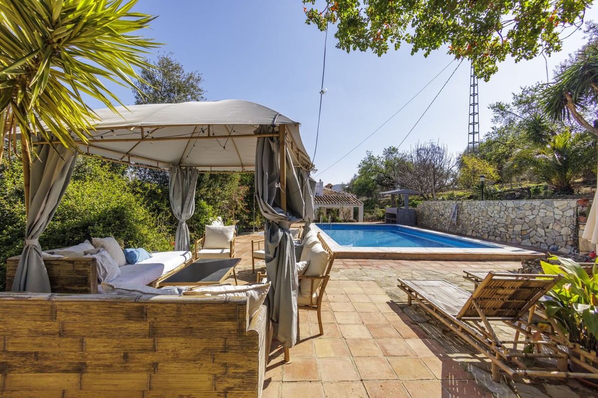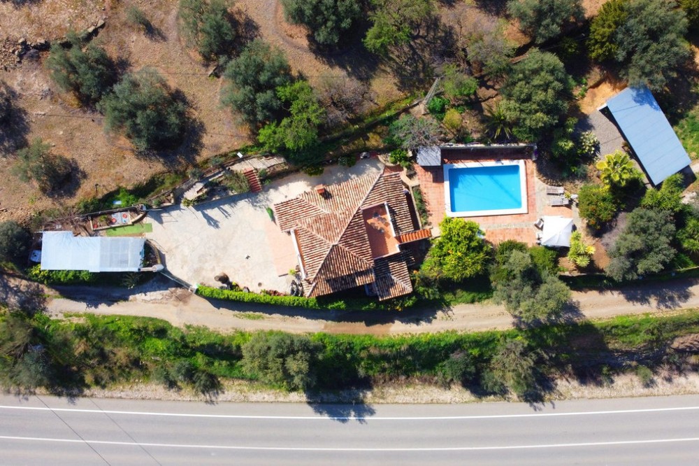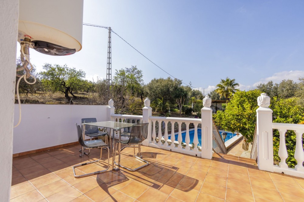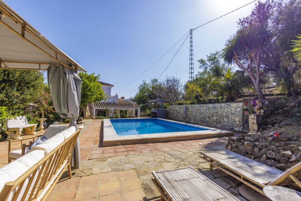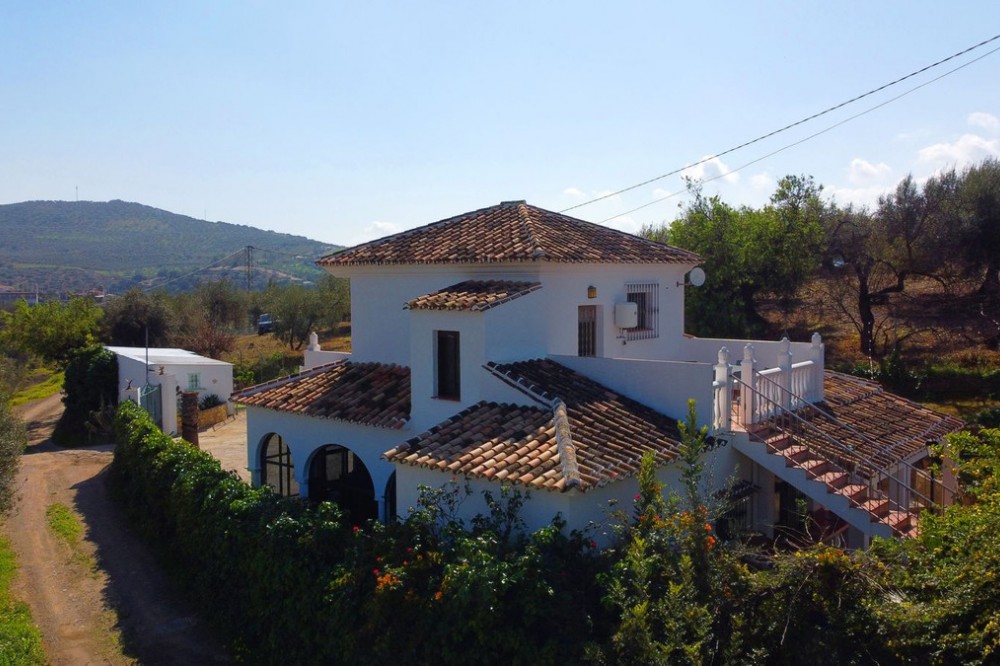 - A stunning villa in the idyllic white village of Riogordo, conveniently located in the outskirts on the A356 between Vélez Málaga and Casabermeja. This unique property combines the charm of the Andalusian countryside with proximity to major amenities, just 35 minutes from Málaga airport and the sunny beaches of Torre del Mar. The villa sits on a spacious plot of 7,003 m², of which 3,000 m² are fully fenced with a high gate, offering optimal privacy. The grounds are an oasis of calm, with lush olive trees, fruit trees, a large chicken coop, a storage shed and an inviting outdoor kitchen. For relaxation, the plot offers an impressive 36 m² swimming pool and several terraces with panoramic views of the beautiful Andalusian countryside. Inside, the house offers every comfort and luxury you could wish for. The bright living room has a cosy pellet stove, perfect for cosy evenings in the winter months. The modern kitchen is fully equipped with high-quality appliances, such as a combination oven, hot-air oven and dishwasher, and connects to city water. An additional 3,000-litre water tank provides additional security. The villa has three spacious bedrooms and two contemporary bathrooms, ideal for a family or guests. The upper floor has a private entrance and features two terraces, making it perfect for rentals. Moreover, there is a tourist licence available, allowing you to immediately take advantage of rental opportunities. With a large parking space at the front of the house, there is plenty of room for several cars. And despite its quiet location, the centre of Riogordo is within walking distance, where you can enjoy the charm of Andalusian village life. This villa is the ideal choice for those seeking a serene retreat surrounded by nature, with excellent connections to the city and coast. Whether you dream of a permanent residence, a holiday home or a profitable rental investment, this property offers everything you need.