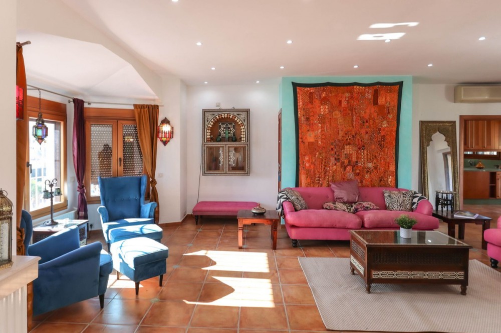 - Impressive Villa with Stables . 4/5 Stables . Spacious Property . Big Beautiul Views . Fabulous Location . Landscaped Gardens . Central Heating . Heated Salt Water Swimming Pool . Outdoor Kitchen . Separate Accommodation(s) . Garage This large impressive villa on the outskirts of Alhaurín el Grande is quite unique with big open views, landscaped gardens and spacious living. Property Details: Wow is your first impression on arrival at this exceptional villa offering spacious accommodation for the family and friends. The property is currently a holiday home but would make a wonderful full time residence. The landscaped garden is a harmonious blend of traditional Mediterranean design and the region's distinctive natural beauty, pathways wind through a tapestry of aromatic herbs—lavender, rosemary, and thyme—while the gentle hum of cicadas fills the warm air. The large lounge sits in the centre of the property and runs from the front to the rear of the property opening into the a conservatory to the rear of the property which opens to enjoy those beautiful views. This kitchen sits to the side the lounge again with access to the conservatory and the wrap around the terrace, both the kitchen and lounge feel very social with direct access to the terraces and conservatory. The Master Suite is located to the left of the lounge with ensuite bathroom, dressing room and lounge with central fireplace, this is lovely secluded separate suite that is currently used as a the master suite but alternatively could be used as a guest suite as it feels very private. There are two further bedrooms on this level (one currently used as a gym) and a bathroom. The laundry room is also accessed from the amin entrance hallway. Downstairs you will find another a separate apartment with kitchenette that leads directly to the shaded outdoor kitchen and dining area. To the side of the outdoor kitchen with a separate entrance is another self contained suite, with small lounge and is currently used as an over spill bedroom, a bedroom and ensuite bathroom, there is direct access from here to the outdoor kitchen. The stables are located to the right of the property with direct access to the beautiful sloping land. The stables sits to the right of the property and do need some reform work. Outdoor area and Land: Gently sloping land Views: Panoramic of countryside Access: Excellent