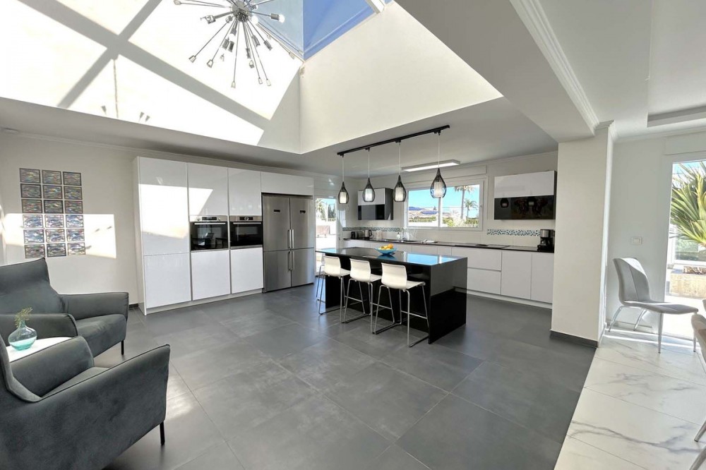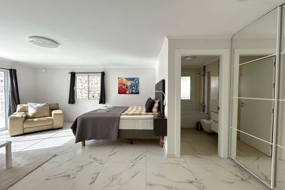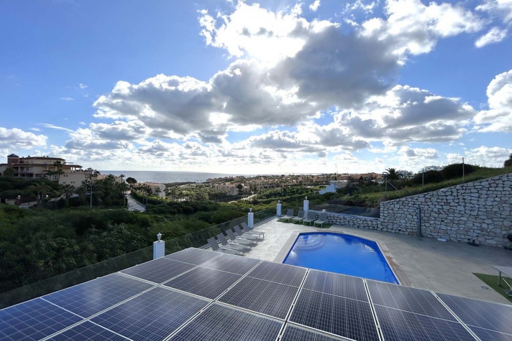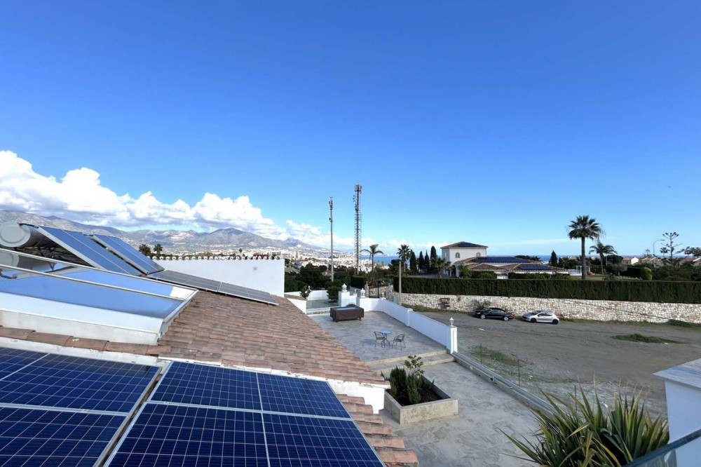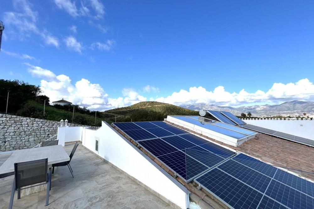 - Located in the beautiful area of El Faro, Mijas, this stunning villa offers the perfect blend of luxury and convenience. Just minutes from shops, restaurants, and the beach, the villa provides a peaceful yet accessible retreat. With breathtaking views of the countryside and coastline, it offers a serene living experience. The spacious villa features six bedrooms, each with an ensuite bathroom, a fully equipped kitchen, and a separate guest apartment with its own kitchen, bedroom, bathroom, and living room. Outdoor spaces include large terraces, gardens, a solarium, a heated pool, and an outdoor dining and barbecue area. The villa also boasts air conditioning, underfloor heating, and solar panels for power and water heating. Additional amenities include a laundry room, covered garage for two vehicles, and exterior parking for up to three more cars. This exceptional property combines comfort, style, and sustainability in a prime location, offering an ideal home for year-round living or entertaining.