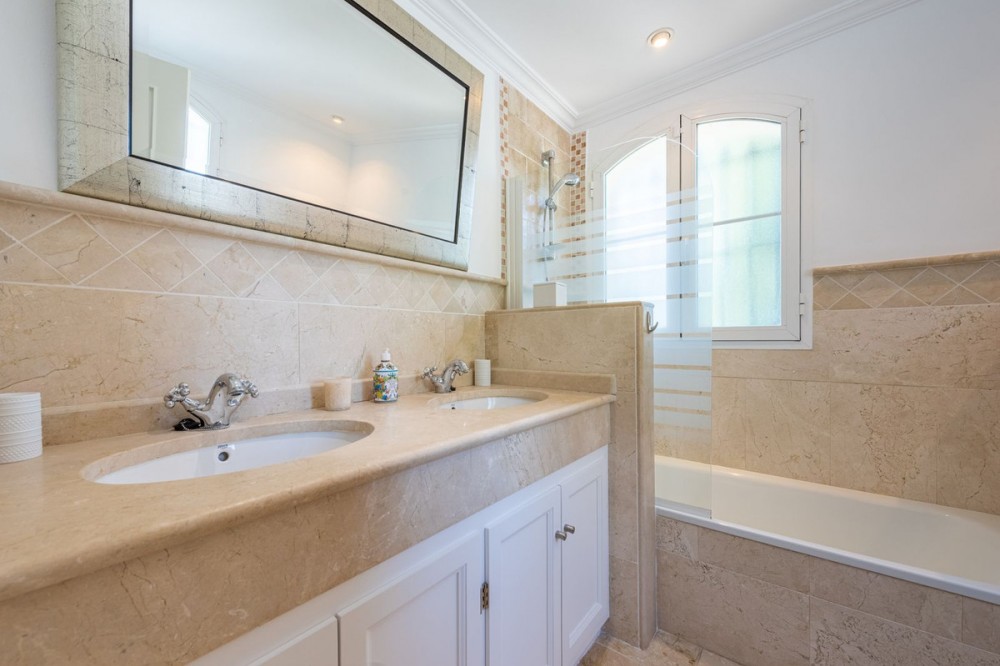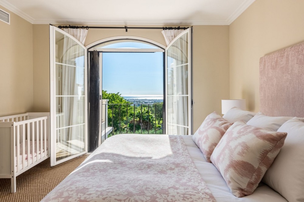 • Classic Andalusian Luxury in Marbella’s Hidden Enclave of Vega del Colorado Set within the highly private and fully gated community of Vega del Colorado — a “hidden” luxury enclave on the border of Nueva Andalucía and La Quinta — this elegant villa offers the warmth of classic Andalusian architecture combined with select contemporary updates. With only around 30 villas behind 24-hour security, the community is prized by those who value exclusivity, serenity and convenience to both golf and Marbella’s lifestyle amenities. The villa is arranged across three bright levels, framed by mature gardens and elevated for privacy. Recently modernised in key areas, including the contemporary kitchen and dining space, the villa retains its original high-end build quality throughout the rest of the home, with finishes that have been exceptionally well maintained. The main floor welcomes with a grand double-height entrance hall leading to an inviting living room with fireplace, a spacious modern kitchen with dining area, and a glass-enclosed terrace that serves as a year-round winter lounge. The ground floor enjoys partial sea views, visible from both the living level and the pool terrace. A guest bedroom and bathroom complete this floor. Upstairs, the luxurious master suite features a private terrace with open sea views, a generous en-suite bathroom and ample wardrobe space. Two additional en-suite guest bedrooms ensure privacy and comfort for family and guests. The lower level offers a versatile guest suite — ideal as a private apartment — along with a cinema/games room and direct access to the gardens. Outdoors, multiple spaces have been designed for relaxation, dining and entertaining: a sunlit pool terrace with partial sea views, a peaceful garden patio and a charming lower orchard with fruit trees. The property’s elevated position and surrounding greenery create a haven of tranquillity while remaining close to the best of Marbella, Nueva Andalucía and Benahavís. Balancing authentic Andalusian character with stylish modern touches, this villa represents an exceptional opportunity to own a refined family home in one of Marbella’s most discreet and securely gated residential communities.