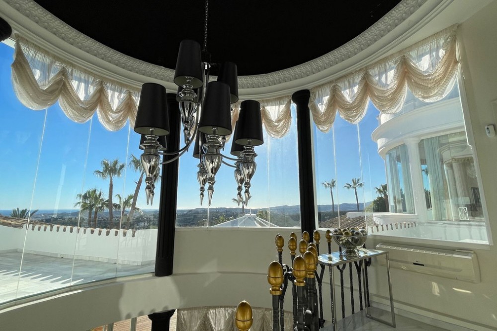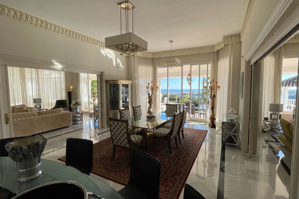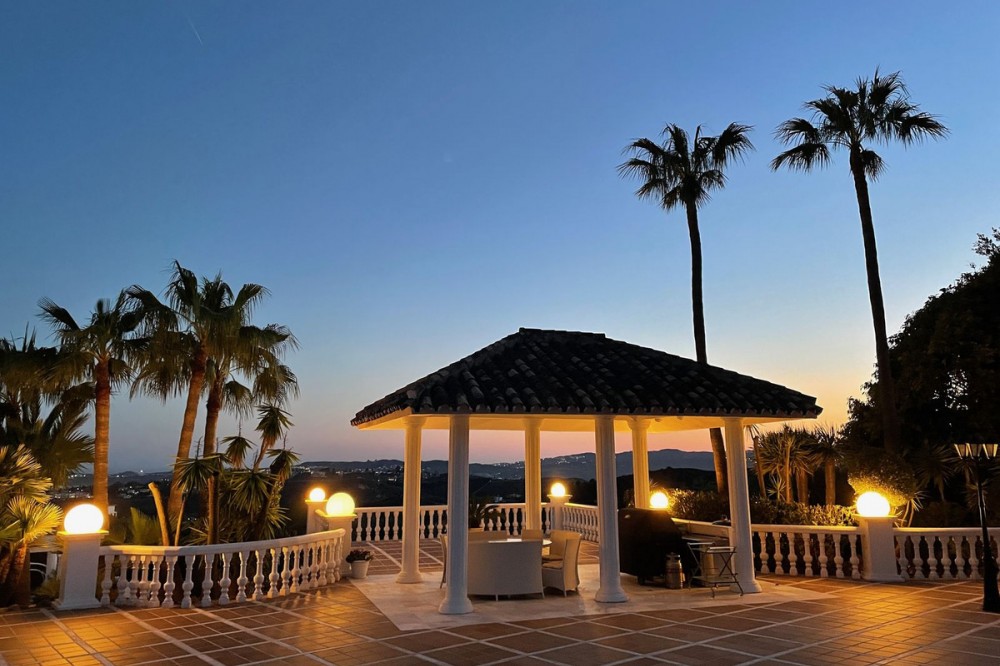 - SPECTACULAR MANSION WITH PANORAMIC VIEWS IN MIJAS PUEBLO Located in one of the most privileged areas of the Costa del Sol, this impressive villa combines luxury, large open spaces, and an unparalleled natural environment. The main villa has 3 bedrooms; outside there are 3 more bedrooms. Located between Malaga capital and Marbella, just minutes from the charming white-washed village of Mijas, this property offers a haven of exclusivity and privacy with panoramic views of the Mediterranean sea and surrounding mountains. Architecture and Design: From the first moment, the house impresses with its majestic entrance hall, crowned by an elegant vault and a large greenhouse, which gives direct access to the main terrace. Its interior design has high ceilings, large and tall windows that fill each room with natural light. It has several living spaces, including a formal lounge with integrated doors, a spacious and bright dining room, and a second, more cozy living room with fireplace and TV. All the rooms have direct access to lovely covered porch. In total, the house has four fireplaces and an underfloor heating system that ensures comfort throughout the year. Kitchen and Guest Areas: The kitchen is spacious and elegant, with large bay-windows. There is a breakfast area and direct access to the garden. Additionally, the property includes a separate apartment for guests or staff, with its own kitchen, fireplace and a large bathroom with a balcony. Landscaped Gardens: The mansion is surrounded by magnificent tropical gardens with automatic irrigation and an ornamental fountain. The large main terrace is decorated with lamp posts, other sunny terraces offer ideal spaces for rest and contemplation. In the southwest corner, a white pergola with a cane-roof houses a lovely BBQ area equipped with a refrigerator and night lights. Many palm trees. There is a helicopter landing pad. Guest house and Pool: The private 12 x 20 meter swimming pool is truly magnificent, with a uniform depth of 1.60 m, there is a raised platform with sun loungers for the ultimate experience in relaxation. The self-contained guest house has views and direct access to the beautiful swimming pool. Lovely covered porch. It consistes of a central lounge with open-plan fitted kitchen. Air con h+c. Two bedrooms, both en suite, with plenty of cupboard space. This is the ideal property for entertaining guests and enjoying the sun and pool with the whole family. Extras and Amenities: Air conditioning h/c throughout. Electrical and telecommunications installations with fiber optics. Large cistern in the garden for water storage. Exterior lighting and ample space for solar panels. Storage room below with air chamber under the villa. There are no community fees. Privileged Location. Just 15-20 minutes from Malaga airport and 20 minutes from Marbella, the villa boasts a strategic location in a peaceful yet well-connected area. Mijas Pueblo, with its Andalusian charm, is only 4 minutes by car, while the beaches of Fuengirola are just a short drive away. Property tax: 4.800 €/year Rubbish: 160 € /year A unique spacious property for those discerning clients seeking exclusivity and tranquility in a beautiful natural environment. Request a visit and discover its true potential!