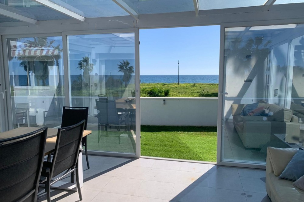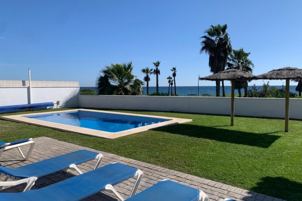 - Available for Sale and For long term rent this beautiful house on the first line beach with spectacular sea views. With natural grass and heated swimming pool. It has 3 bedrooms and 2 bathrooms. Private parking and premium location, with easy access to the beach, promenade, restaurants and beach bars. Very good area in Estepona The house is fully furnished and equipped. If you are looking for tranquility and comfort this is your home! Do not hesitate to contact us for more information.