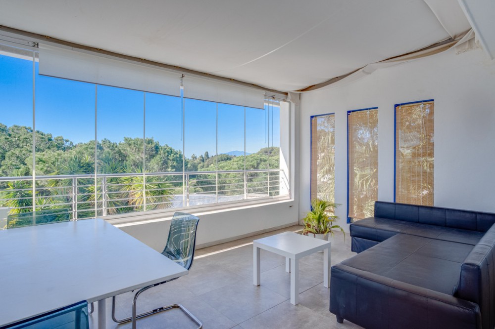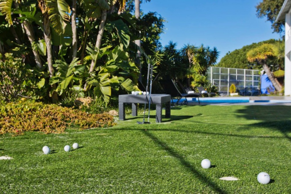 - Unique eight bedroom south facing villa, in a tranquil area of Elviria, Marbella. Located close to the beach, schools and local amenities, this fantastic property is also a successful operating Bed & Breakfast. The property consists of the main house, two apartments with independent access and an additional two bedrooms with access from the garden. The house is equipped with everything you would need for year-round living or holiday rentals including a heated swimming pool, golf putting green, outdoor sauna, and BBQ area. The terrace and solarium boast stunning sea views. Other features include hot and cold air conditioning, private parking space, storage area and solar panels that supply the electricity to run the whole property, as well as a back-up generator.