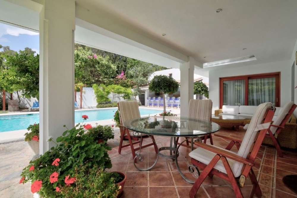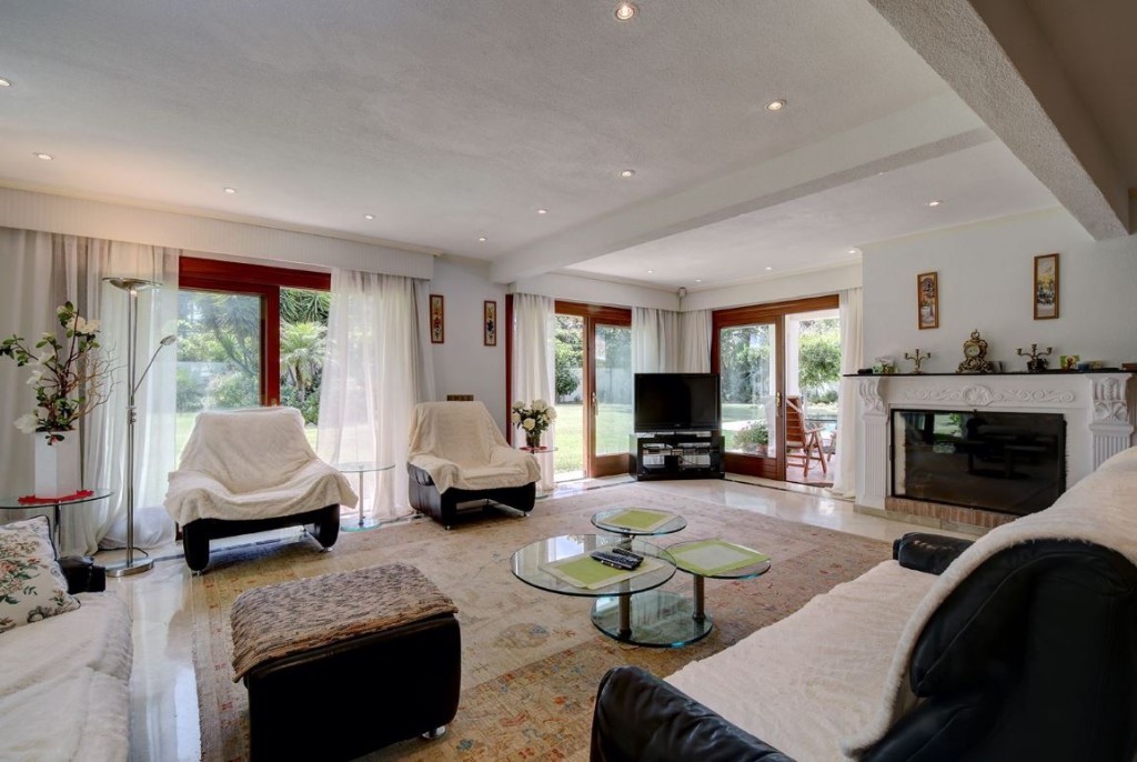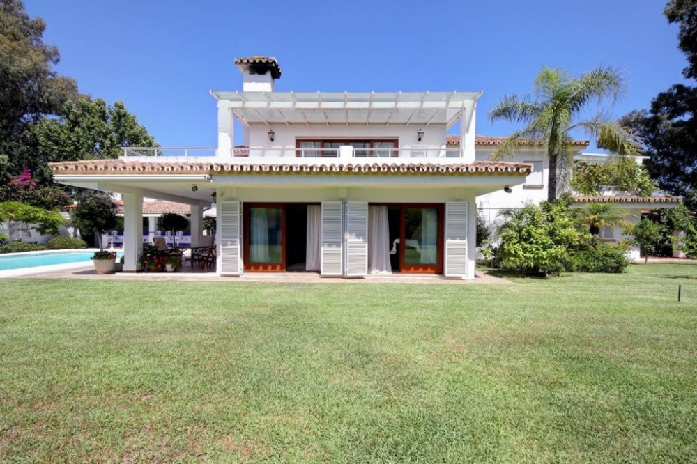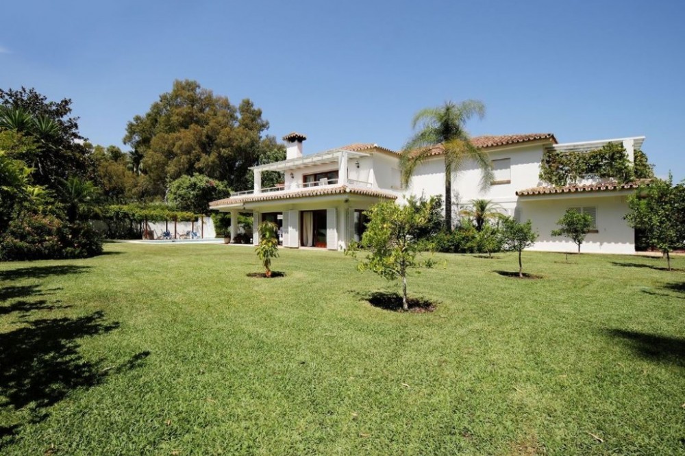 - This stunning beachside villa is located in Costalia on the New Golden Mile, Estepona, just a short walk from the beach and local amenities. Ideally situated, it is only a ten-minute drive to both Estepona and Marbella. The south-facing family home features expansive private mature gardens, a swimming pool, and an outdoor entertainment area. Spread across two levels, the villa offers five spacious bedrooms, four bathrooms, a fully fitted kitchen, and a large living and dining area with a fireplace that opens directly to the garden and terrace. Additional features include hot and cold air conditioning and a private garage.