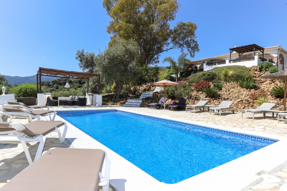 - DREAM Villa . Privacy . Fantastic Pool Area . Two lovely pueblos close by . Possible Rental Income . Large basement What can we say about this propety? I think the photographs show you that this property is pretty stunning! This is very immaculate villa sits in the hills between both Alozaina and Tolox. The plot is extremely beautiful surrounded by natural rocks, olive and almond trees... there is also an Era on the land (an ancient circle of laid stones originally used for threshing wheat). Property Details A shaded terrace runs along the rear of the property providing the much needed shade during the summer months. With music system, soft seating area and of course those lovely views this is the perfect spot to sit and relax. Patio doors lead from the terrace to the lounge... the perfect layout! From the lounge you have access to the fully fitted kitchen. The house boasts 4 large double bedrooms the master is especailly spacious and also has the luxury of an ensuite bathroom. The property sits on the top of a large basement that is currently used for storage and a garage. Outdoor area and land The land at this property is very pretty with lots of natural features to include a mediteranean garden.. the plot leads down to the stream at the bottom of the land. The owner has designed the garden to be easily maintained with an irrigation system. 16 Solar Panel and Batteries. Views Beautiful andaluican countryside to include olive and almond groves. Access Excellent, all concrete.