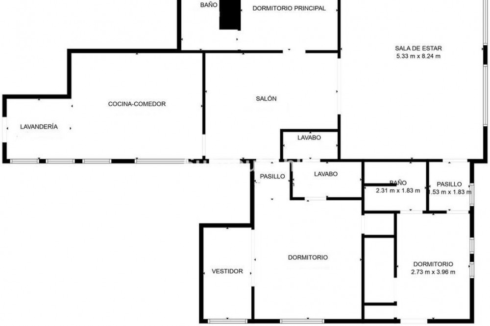 - This very spacious one storey villa sits on a very large flat plot of land close to town and within walking distance of local restaurants. The rooms throughout this villa are sizeable, there are three bedrooms all ensuite, a lounge with a fireplace and a fitted kitchen. Next to the main house is a one bedroom guest apartment and there is also another building near the private pool which could accommodate another studio apartment. The plot is very large and has a pond, a pool, covered and open terraces, storage and a driveway leading to a three car garage. Everything in the house functions however it is in need of a reform. This family home is close to town and all its amenities and would make an excellent full time or or a great holiday rental.