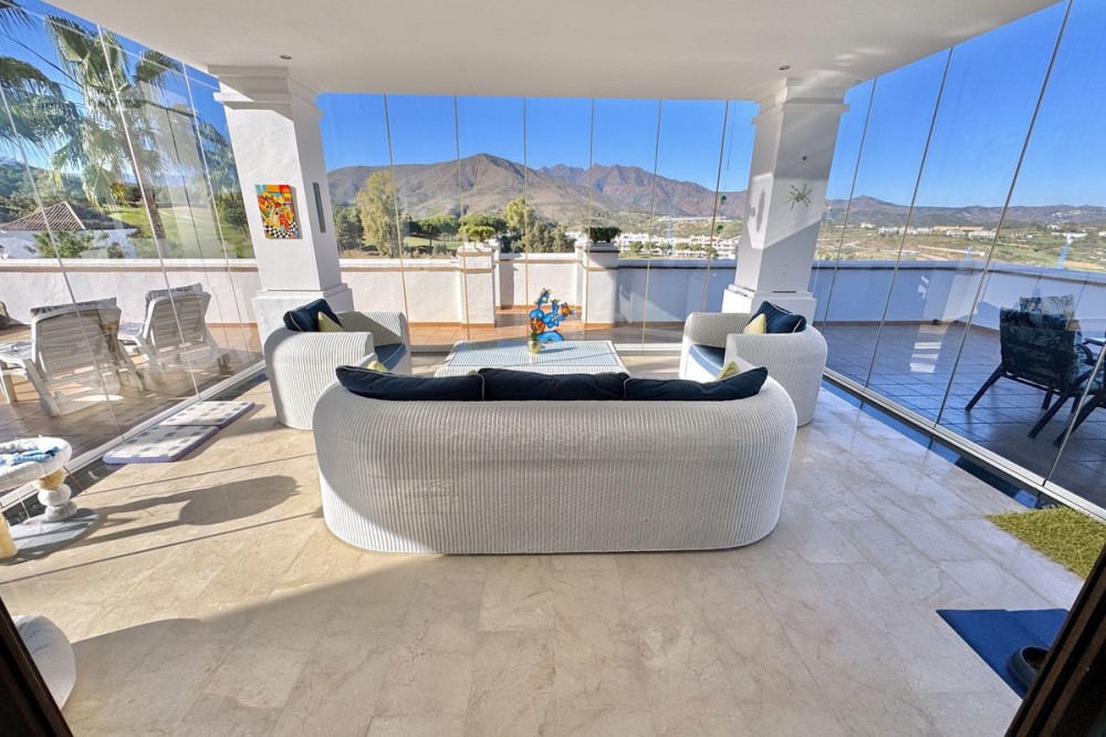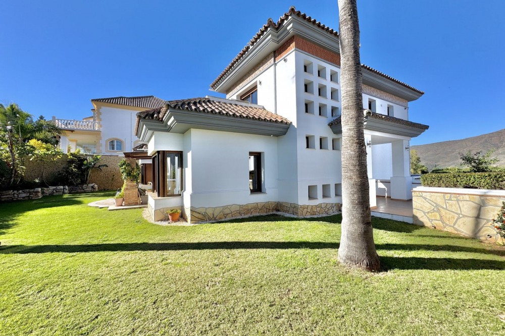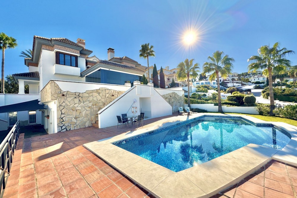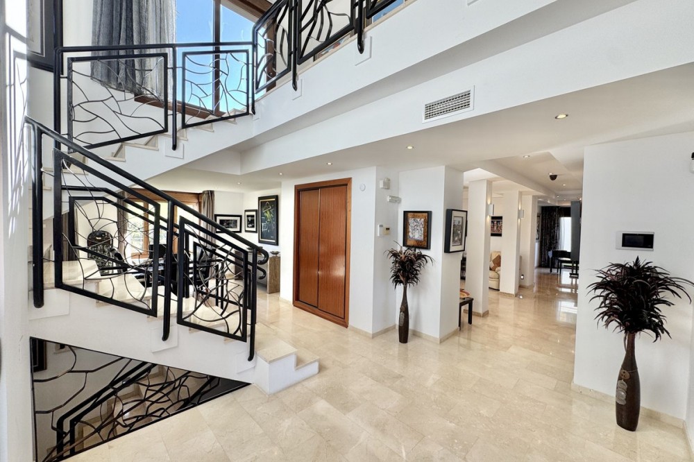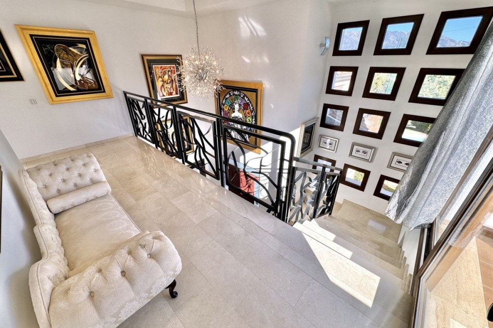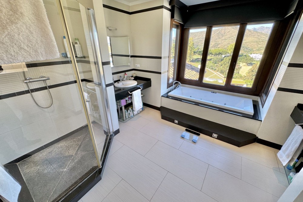 - Spectacular 5+ bed Modern Andalucian front-line golf villa in La Cala. Enormous yet homely 532m2 build on 1134m2 plot. Breathtaking golf, mountain & sea views. 6 mins walk to clubhouse & 10 mins drive to beach. Only approx. 6 mins walk to La Cala Golf Resort's beautiful clubhouse & hotel with fantastic on site facilities; three new padel courts, a floodlit hard tennis court, squash court, a fitness centre and a gymnasium. A few mins more to the beautiful Spa resort. Plus only approx. 10 mins drive to the extremely popular La Cala de Mijas Beach village with fabulous shops, bars, restaurants and its beautiful "blue flag award" beaches. VILLA Spectacular & timeless 4+ bed "Modern Andalucian" front-line golf villa with independent 1 bed apartment for sale in La Cala Golf Resort. Private driveway via electric gates leading up to large 2 car garage, you could park around 7 cars on the driveway with 4 of them under large shade sail. From the parking area you have direct access to the garage, office and front door to independent 1 bedroom apartment. Stairs also lead to the entrance of the main villa, pool and garden. As you enter the villa you instantly get a feeling of class with its double height entrance hall, beautiful window arrangement and modern ornate balustrades on the stairs leading to both upper and lower floors. Looking straight ahead from the entrance you get that spacious modern open plan living feeling, with an open plan corridor leading to around 5 living areas; Dining room and Morning room to left, Piano / library straight ahead and to the right you have a modern luxury Kitchen / Breakfast room, open to a large Lounge with log burner, which in turn leads out to a beautiful Conservatory. Just about every room offers beautiful golf / mountain views. You also have two Master Bedrooms on the ground floor with ensuite Bathrooms. Taking the elegant stairway to the first floor landing which has 2 terrace areas to the rear overlooking front line golf and distant sea views. The first floor has an incredible Main Master Bedroom with private hallway offering lots of wardrobe space and a large ensuite Bath / Shower room. It also has its own enormous terrace with panoramic views over the swimming pool, golf, country and mountains. On this level you also have another Master Bedroom with ensuite Bathroom and own terrace overlooking front line golf. Taking the stairway down to the lower level (parking area) you have an Office, Gymnasium, Utility room, Cloakroom W/C, spacious Garage for 2 cars plus workshop and access door to the rear of the independent 1 bed apartment. The property also benefits from home demotic system, underfloor heating and air conditioning as well as backed up by economic solar panel system. GROUNDS To the front of the property you have a large Jacuzzi next to the conservatory and stairs down to stylish swimming pool with large patio area for entertaining or relaxing, surrounded by shrubs with beautiful panoramic golf, countryside and mountain views. To the rear of the property you have a lovely chilled area, ideal for enjoying a tipple of your choice while overlooking the rear garden and front line golf views. If you are looking for a classy luxury villa in an idilic setting, which offers both spacious modern open plan living yet still has a really homely feel, then make sure this property is at the top of you viewing list. LOCATION La Cala Golf resort is the largest in Europe, with three 18 hole championship golf courses and fabulous facilities including; on-site spa, wellness centre, restaurants, 3 new padel courts, a floodlit hard tennis court, squash court, a fitness centre and a gymnasium. La Cala Resort was also awarded Spain’s Golf Resort of the Year in 2024 by the International Association of Golf Tour Operators. Also only approx. 10 mins drive to the incredibly popular La Cala de Mijas beach town, which is quickly becoming one of the most sought after areas on the coast and attracting celebrity chefs and restauranteurs to the area, along with its original fishing village charm and tapas bars. La Cala is centrally located between Malaga (approximately 25 minutes drive) and Marbella (approximately 15 minutes drive) giving easy access to the entire coast. RUNNING COSTS The vendor has informed us that: Community Charges are only approx. €576 per year (which includes € 228 for internet, wifi & telephone). IBI (council tax) is only approx. € 1,748 per annum BASURA (rubbish tax) is only: € 142 per annum. New to market, exclusive listing, spectacular home and location, viewing highly recommended. Contact us now to reserve or view.
