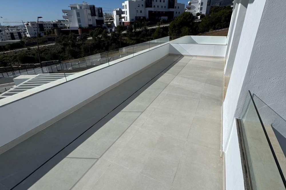 - Brand-new luxury villa in El Higuerón, Fuengirola Location & Amenities: Brand new villa with panoramic views of the Mediterranean, mountains and Fuengirola coastline Situated in the prestigious El Higuerón area Access to top-class amenities: gym, spa, wellness areas, fine dining, Beach Club, and concierge services Family-friendly with playgrounds and lush gardens Direct shuttle to the beach Nearby 5★ Hilton hotel with tennis, padel, sky bar, pool, and restaurant Málaga Airport: 17 min Beach: 7 min Property Details: Bedrooms: 4 Bathrooms: 3 + guest toilet Built area: 294 m² Terraces/verandas: 102.89 m² Plot size: 652 m² Orientation: South-facing Views: Panoramic sea, mountain, and Fuengirola views Swimming pool: 3 m x 10 m Landscaped garden with irrigation system, palm trees, olive tree, flowers and bushes Relaxation area with open fireplace Parking space for 2 cars Layout: Ground floor: Entrance hall with stairs to upper floor Guest toilet Open-plan living room, kitchen, and dining area with direct access to garden and pool One bedroom with en-suite bathroom Upper floor: Three bedrooms and two bathrooms Master bedroom with en-suite and access to a large terrace One additional bedroom also with terrace access Laundry room with washer and dryer.