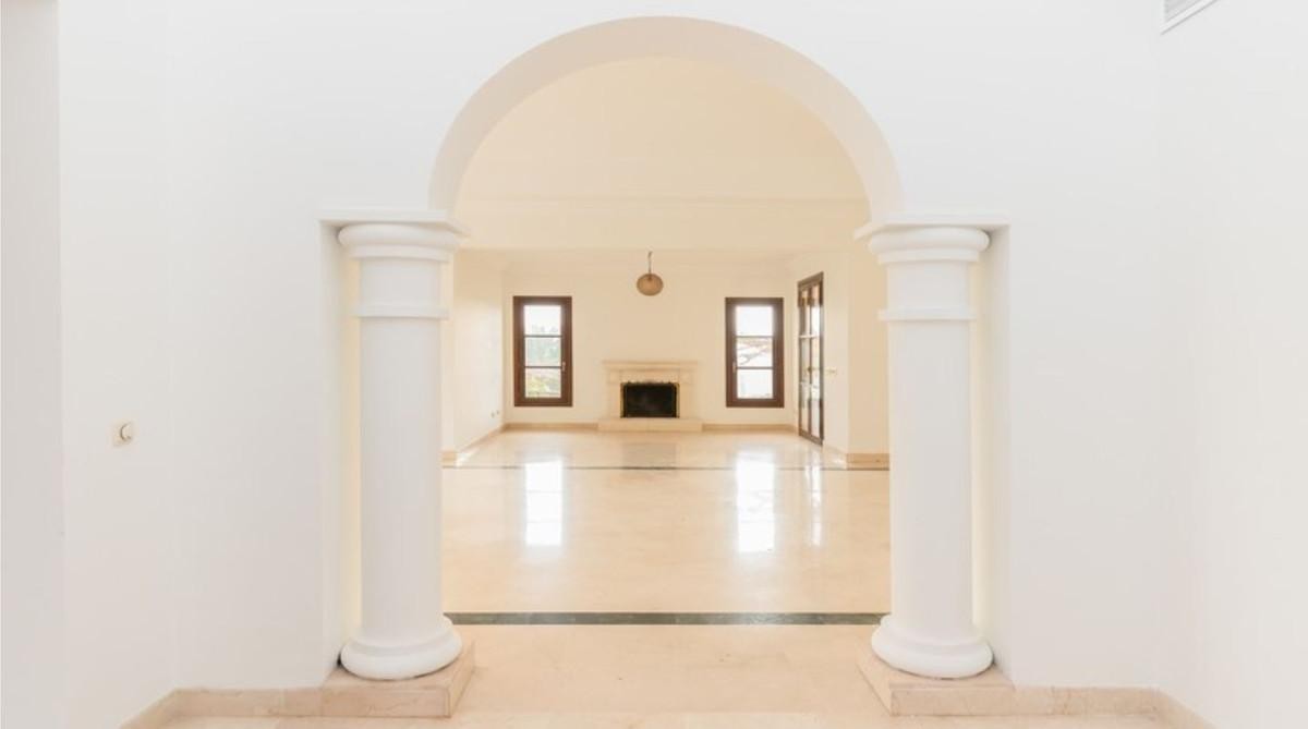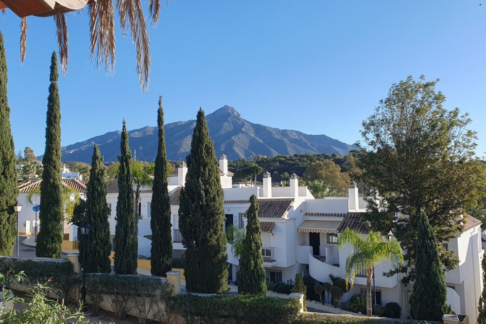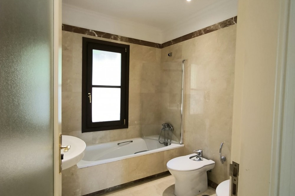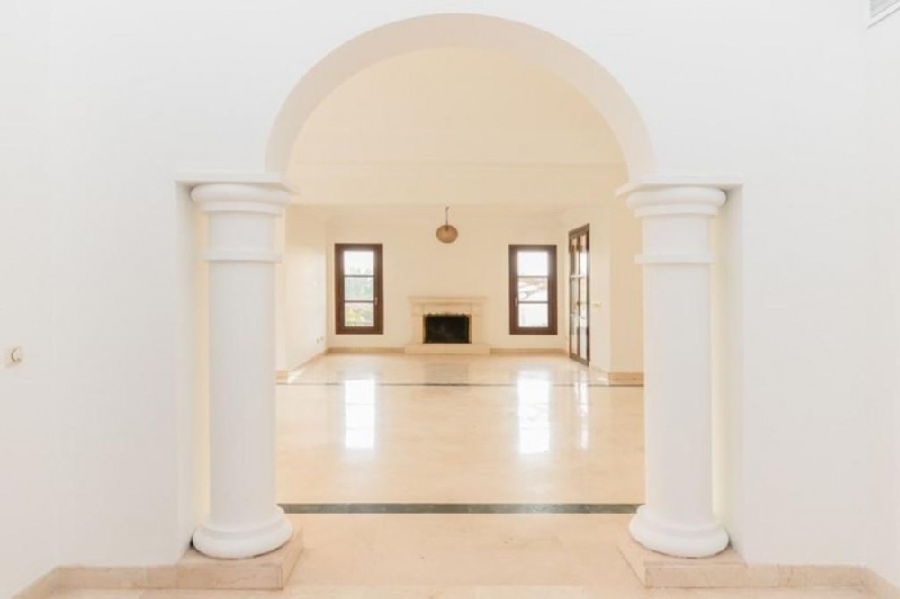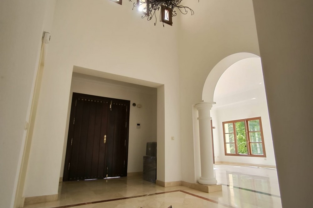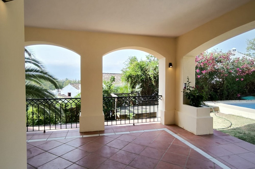• This classic-style house is located in a group of villas with private access in the heart of the Golf Valley in Nueva Andalucía. The villa is distributed on two large floors. The main entrance gives access to a large living room with very bright fireplace from which you can enjoy wonderful panoramic views of La Concha. The living-dining room has direct access to the garden, the pool and an extensive garden with a barbecue area that allows you to enjoy the maximum leisure time outdoors. On this same floor next to the kitchen there is a hall that gives access to a bedroom with en-suite bathroom and dressing room, a second bedroom, a full bathroom and a courtroom. Direct access to the garden and orientation maximize light entry on this floor. The basement floor also has direct access to the garden from its 2 bedrooms, very bright, share a large bathroom, on this floor there is also a room enabled as lavender and a large room that can be arranged for cinema, gym, etc. The house has 2 independent garages. One of them can be arranged for multipurpose room. A villa with great potential in the heart of Nueva Andalucía.