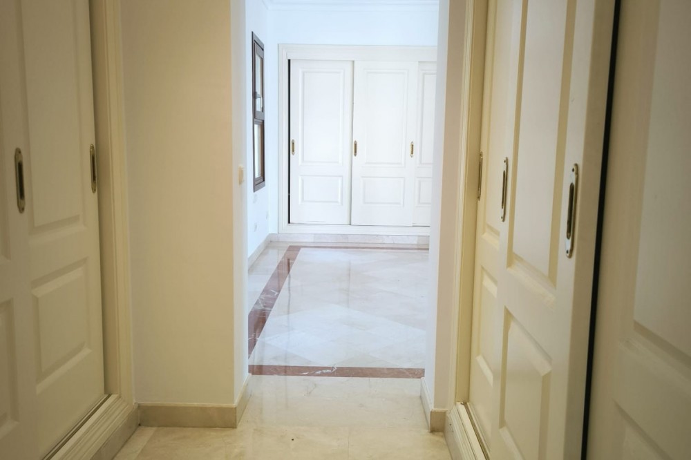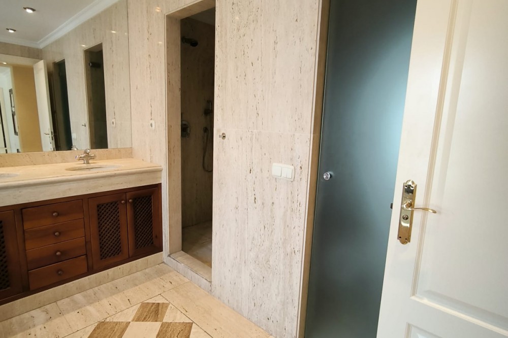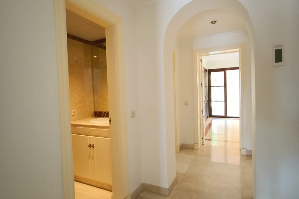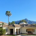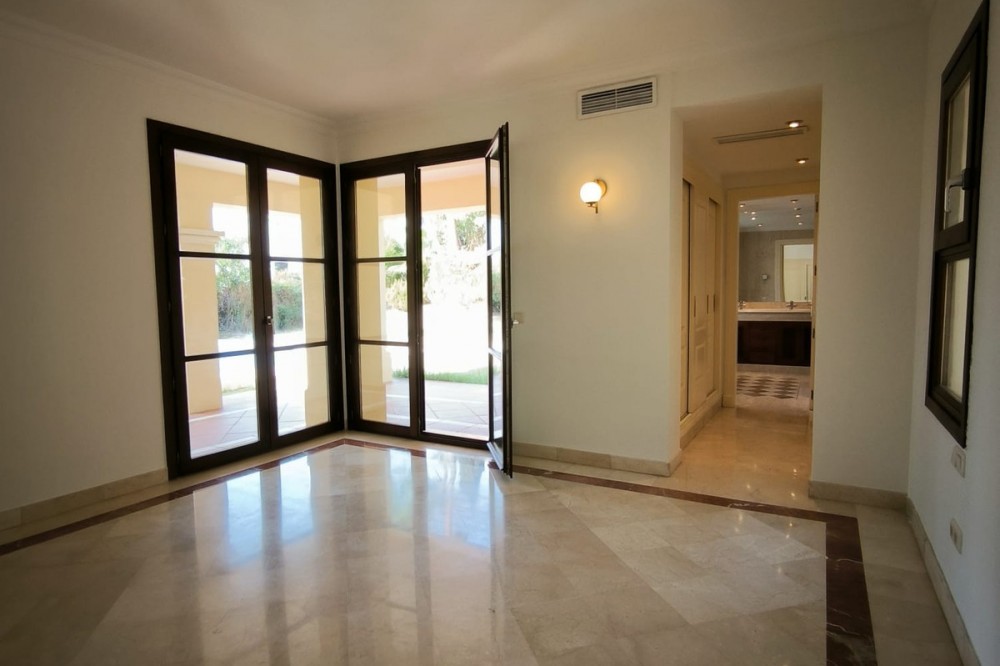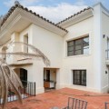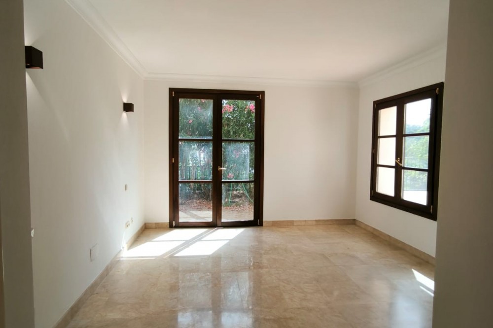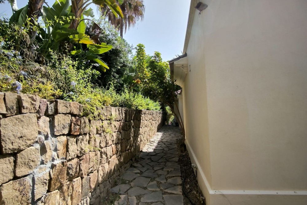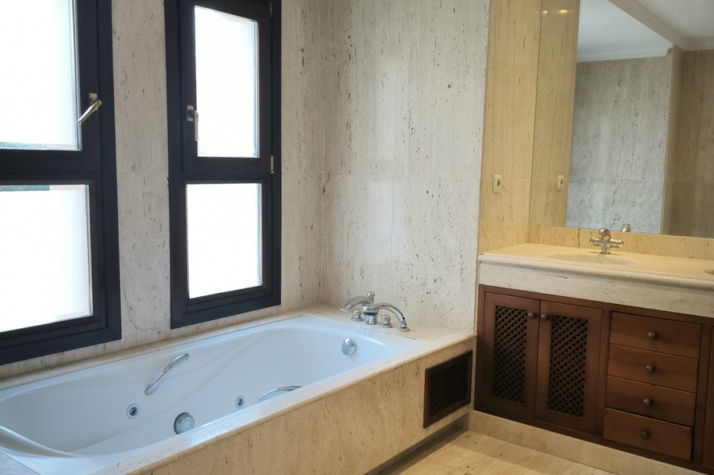 • This classic-style house is located in a group of villas with private access in the heart of the Golf Valley in Nueva Andalucía. The villa is distributed on two large floors. The main entrance gives access to a large living room with very bright fireplace from which you can enjoy wonderful panoramic views of La Concha. The living-dining room has direct access to the garden, the pool and an extensive garden with a barbecue area that allows you to enjoy the maximum leisure time outdoors. On this same floor next to the kitchen there is a hall that gives access to a bedroom with en-suite bathroom and dressing room, a second bedroom, a full bathroom and a courtroom. Direct access to the garden and orientation maximize light entry on this floor. The basement floor also has direct access to the garden from its 2 bedrooms, very bright, share a large bathroom, on this floor there is also a room enabled as lavender and a large room that can be arranged for cinema, gym, etc. The house has 2 independent garages. One of them can be arranged for multipurpose room. A villa with great potential in the heart of Nueva Andalucía.