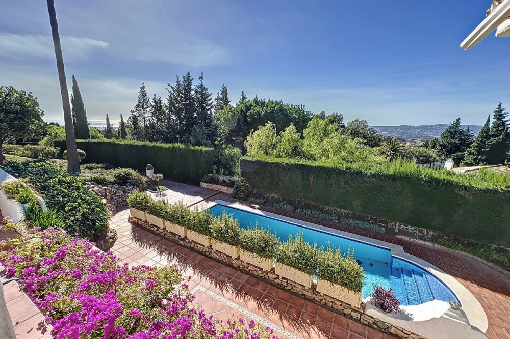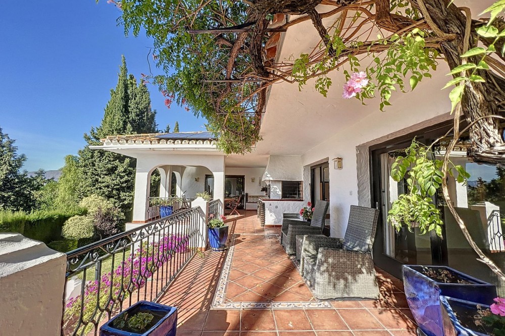 - Tucked away in a beautiful corner of Mijas, this lovely villa offers breathtaking panoramic views that will truly impress. Perfectly designed for two families, it has three spacious bedrooms, plus an extra room with a double sofa bed, providing plenty of space and comfort for everyone. With four stylish bathrooms, everyone can enjoy their own space, and the dedicated barbecue area is perfect for enjoying meals outside and relaxing on warm summer evenings. The large private pool in the center of the property offers the ideal place to relax and have fun under the Andalusian sun—great for both kids and adults. Plus, the villa has its own well and solar panels, making it eco-friendly. The fully equipped kitchen is ready for you to try local dishes or cook your favorites in a cozy, welcoming space. Surrounding the villa, a beautiful garden with fruit trees creates a peaceful spot to relax, play, or simply enjoy the stunning Costa del Sol scenery. In short, this villa combines comfort, style, and natural beauty, offering the perfect place for a memorable vacation in one of southern Spain’s most desirable areas.
