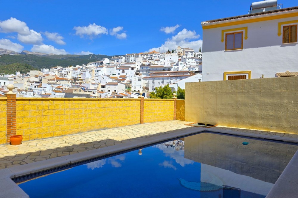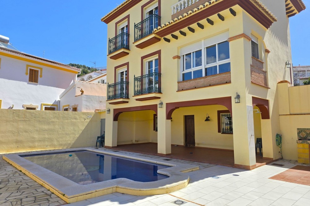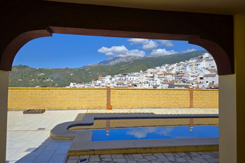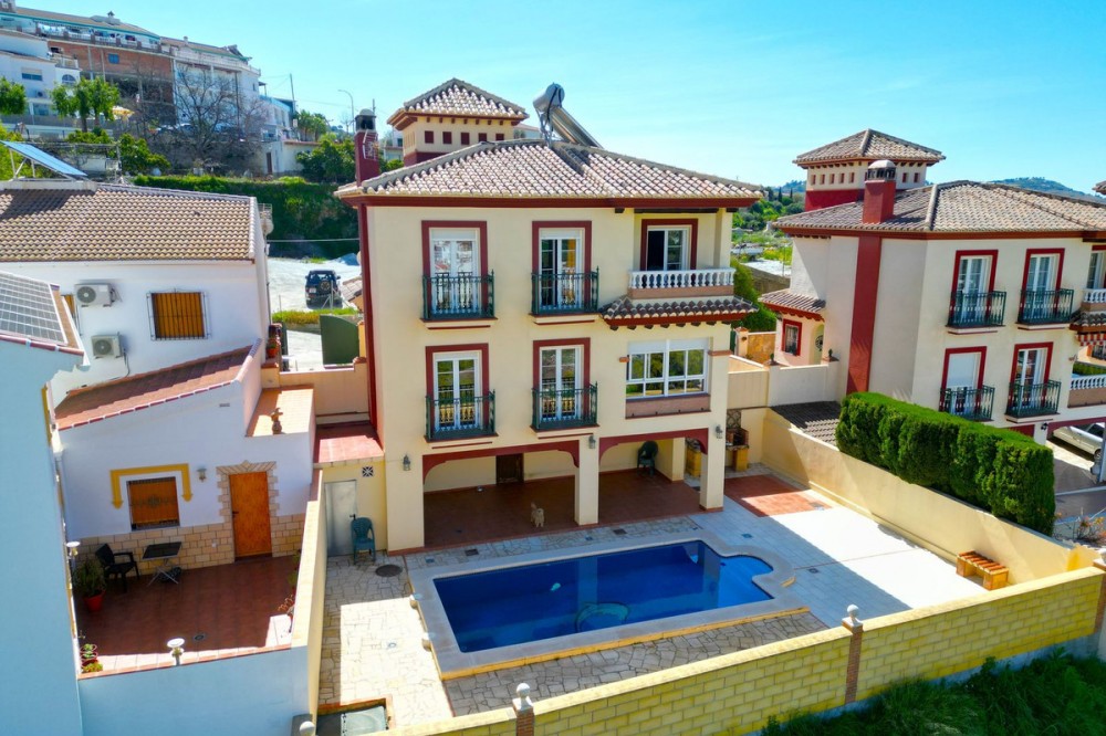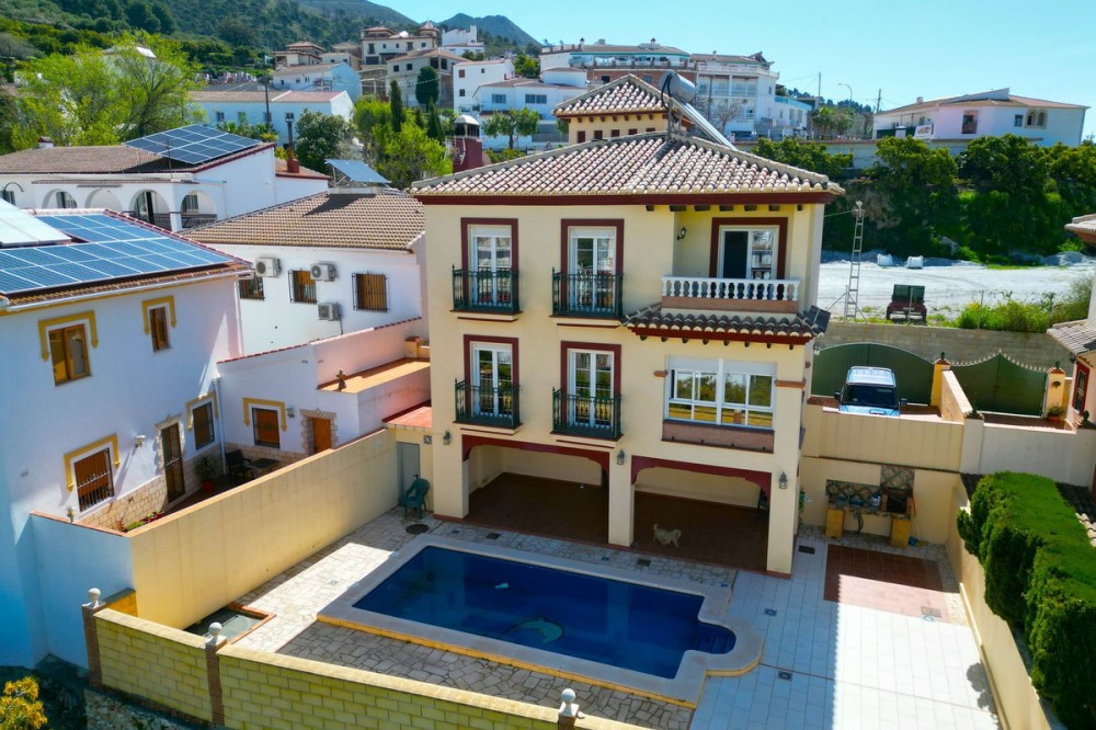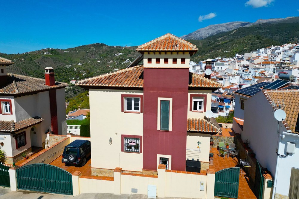 - Beautifull Three-Story Villa with Spectacular Views in Canillas de Albaida Perched on an elevated position in the charming white village of Canillas de Albaida, this stunning three-story villa offers breathtaking panoramic views of the surrounding mountains and picturesque Andalusian landscape. Thoughtfully designed with spacious interiors, expansive terraces, and a private pool, this home is perfect for both permanent residence and a luxury holiday retreat. Interior & Layout Upon entering the villa, you are welcomed into a bright and spacious hallway leading to a stylish living and dining area. Large windows allow abundant natural light to flood the space, creating a warm and airy ambiance. The modern, fully equipped kitchen provides ample room for cooking and entertaining guests. Additionally, there is a guest toilet and a separate laundry room for added convenience. On the upper floor, you will find three generous double bedrooms. The luxurious master suite features an en-suite bathroom, a walk-in wardrobe, built-in closets, and direct access to a private terrace with spectacular valley and mountain views. The other two bedrooms share a beautifully designed family bathroom and both feature charming Juliet balconies. The ground floor includes an additional double bedroom and a full bathroom—perfect for hosting guests or creating a private living space for family members. From this level, you have direct access to the spacious sun terrace and private swimming pool. Outdoor Living: Embracing the Mediterranean Lifestyle Designed to maximize outdoor enjoyment, the villa’s exterior spaces offer multiple areas to relax and soak in the beauty of the surroundings. The large terrace includes a covered veranda, ideal for shaded al fresco dining. A fully equipped summer kitchen with a built-in barbecue makes outdoor cooking and entertaining effortless. The private swimming pool serves as the perfect centerpiece of the garden, offering a refreshing retreat on warm days while you take in the stunning scenery. With low-maintenance terraces and garden areas, this home allows you to fully embrace the relaxed Andalusian lifestyle. Location This villa is set in a peaceful yet accessible location in Canillas de Albaida, a charming village in the Axarquía region. Local shops, restaurants, and cafés are just a short distance away, while the nearby Sierra de Tejeda, Almijara y Alhama Natural Park offers fantastic opportunities for hiking, mountain biking, and nature exploration. The stunning beaches of the Costa del Sol are only a 30-minute drive, and Málaga Airport can be reached in just over an hour, making this home a perfect blend of tranquility, nature, and accessibility. Looking for a luxurious home with breathtaking views and ultimate comfort? This is your opportunity! Contact us today to schedule a viewing and experience this exceptional villa for yourself!
