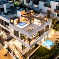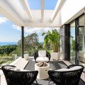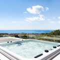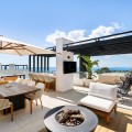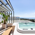 - Located in the prestigious area of Sierra Blanca, this modern villa offers a prime setting just 1.8 km from the Golden Mile’s beaches. Completed in 2022, the property combines exceptional design with the highest quality finishes, delivering sea views from every level and true luxury living in one of Marbella’s most sought-after neighbourhoods. From the moment you enter, the attention to detail is clear. A bespoke modern kitchen with fully integrated Miele appliances connects seamlessly to the open-plan living and dining area, flowing directly onto the expansive terrace, pool, and gardens. Thanks to its south to west orientation and floor-to-ceiling windows, the villa is bathed in natural light throughout the day. Only the finest materials have been used, including Porcelanosa tile flooring inside and out, triple-glazed Cortizo windows, Porcelanosa bathroom fittings, oak carpentry, and ambient lighting throughout. Comfort and convenience are guaranteed with underfloor heating across the entire home, zoned air conditioning, a domotics system for lighting and climate, and a built-in cinema-grade sound system. The outdoor areas are designed for relaxation and entertaining, with Mediterranean planting, citrus trees, and a low-maintenance rear garden with magnolias. The heated pool includes a swim current system, perfect for endless laps under the sun. The villa’s layout offers three bedrooms upstairs and one on the lower level. The master suite enjoys its own en-suite bathroom, while the two additional bedrooms share a high-spec bathroom. Each bedroom opens onto a private terrace with sea views and peaceful seating areas. The lower level features a further bedroom with en-suite, a utility room with Miele appliances, storage, and a large private garage fitted with a Tyssenkrupp car turntable for ease of access. Additional gated driveway parking adds practicality. The showpiece of the property is the spectacular rooftop solarium. With panoramic views stretching from Puerto Banús to Gibraltar and across to North Africa, this level is designed for entertainment and wellness. It includes a dining space for up to ten guests, an outdoor teppanyaki grill, a Porcelanosa kitchen with fridge, dishwasher, and island, a large jacuzzi, an outdoor shower, a Balinese bed, and a bespoke Scandinavian sauna with built-in Bluetooth. An automated retractable roof and heating panels ensure year-round enjoyment. Las Vistas 4 combines prime location, world-class qualities, breathtaking views, and exceptional lifestyle features, making it a rare opportunity to own one of Marbella’s finest modern villas.