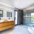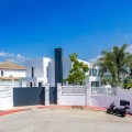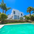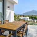 - This absolutely beautiful villa has just been completely reformed in a modern contemporary style and is situated in Nueva Andalucia, just a short walk from services and restaurants, including a supermarket. The large commercial centre of Central Plazas is just a 10 minute walk away. The villa is in a no-through road, guaranteeing a peaceful and private location, free of traffic. The villa itself is very impressive and the materials used in the refurbishment are top quality. Upon entering on the villa we find a spacious open plan configuration, with large windows that allow plenty of natural light into the property. This area incorporates the kitchen, with island and completely fitted out with quality appliances including a wine fridge, the dining area and the living area with fireplace . There is also a breakfast area and several terraces to enjoy the ambient climate. The laundry room and storage are in a separate area. On the upper level we find three bedrooms, all with modern ensuite bathrooms and two of the bedrooms have a nice terrace. On the lower level of the property, we find two more bedrooms, two bathrooms, a TV / Cinema room and a games room with pool table / table tennis table. There is also an office on this level. Several features have been incorporated into the design such as a Demotic system that controls the lighting, heating, cooling, electric blinds and the security. Everything can be controlled via a mobile smartphone. The villa has good security with CCTV cameras both inside and outside the villa and these cameras can also be accessed from a smartphone. The landscaped gardens offer beautiful and open views of La Concha mountain and the villa also offers total privacy. Everything comes with a year guarantee, giving the new owner absolute confidence in this beautiful new home.