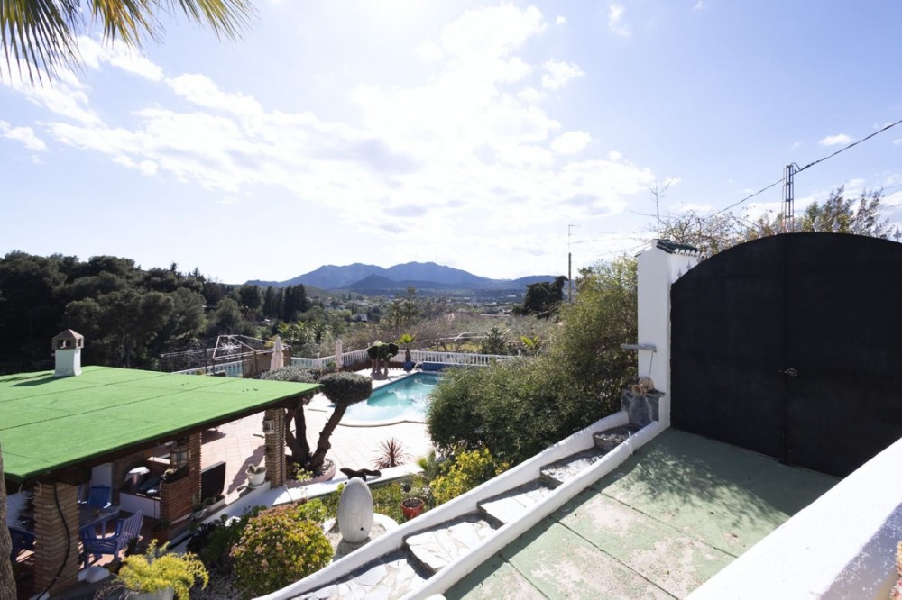 - Here is your opportunity to purchase a desirable, and very large country villa within walking distance of the local amenities, located on an asphalt road, with next to no neighbours and the best views you could wish for. For those seeking something special, this is your chance. Please note, at present, the property is configured as a two bedroom Villa with 2.5 bathrooms. With very little work and expenditure this spacious villa could accommodate four bedrooms each with an ensuite bathroom. Additionally, there is an opportunity to adapt a store room into a bedroom or office and separately, the garage could, with planning permission become a large family studio for visiting or paying guests. In all, the property has the potential to become a 7-8 bedroom, 7 bathroom family residence or bed and breakfast. The property is in an area of outstanding natural beauty, with stunning, uninterrupted and wide-ranging views of the Alhaurin el Grande, Sierra Blanca and Sierra Las Nieves Mountain ranges, with immediate valley and forest views. Additionally, has the all-important south / southeast and southwest orientation. Privacy is of notable mention, as is the security and safety provided by this property and sought after location. The main property is a lovely and well maintained, large and open plan, originally designed as a four bedroom, now two bedrooms, two and a half bathrooms, brick built, chalet styled villa. Off the open plan kitchen dining level is a substantial BBQ terrace, outside bar, large pool and formal garden – all with the same, fabulous views. In all, there is 500m2 of brick-built property, outbuildings, bungalows and garaging. Of interest will be the super-sized, near four car, vaulted garage suitable for the car or bike enthusiast, possibly for conversion, for use as an artist’s studio, home gym, for home working and much more. Outside of the garage is a car port and additional hard standing and large driveway. For those seeking a rental income, to house a bigger family or to welcome occasional guests, there are two (2) stand alone, one-bedroom bungalows, both a mirror image of each other, with a separate bedroom and bathroom, lounge-kitchen-diner. Outside the bungalows, there are terraced areas and gardens that offer privacy for any guests that may stay. Located on the plot of nearly 5,000m2, there are several established areas of mature gardens coupled with an expansive orchard providing fruit trees, almonds, grapes, avocado’s and much more. In addition, there are a series of outbuildings suitable for keeping small livestock, for dog grooming, an artist studio, hobby room, tool or storage shed or whatever your heart desires. The owners are bird and fish enthusiasts and have two specialist fishponds and a large aviary. The plan is to relocate the birds and fish or dependent on the new owner, some could be adopted as part of the sale. Without the fish, one pond could be converted into a second swimming pool suitable for the bungalow guests and the other, back filled for planting or removed completely to widen the driveway. The choice is yours to consider. This property will appeal to those looking for a private and secluded lifestyle, to work from home, to operate a business like a fabulous bed and breakfast, to provide hobby-based retreats, to house a car or bike collection, storage of a motorhome or to build the ultimate man cave. Whilst the possibilities are endless, the number of potential properties such as this are few and far between.