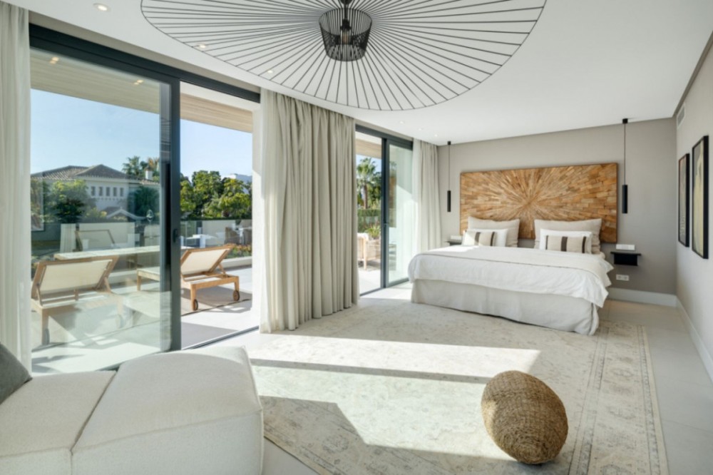 - Exquisite Modern Villa in La Cerquilla – The Epitome of Luxury Living Nestled in the prestigious residential enclave of La Cerquilla, this stunning modern villa seamlessly blends contemporary luxury with unparalleled convenience. Situated in Marbella’s coveted Golf Valley, the property offers breathtaking views of the sea and mountains while remaining just minutes from top-tier amenities, golf courses, and the vibrant Puerto Banús. Designed to maximise natural light and open-space living, the villa boasts floor-to-ceiling sliding glass doors that create a seamless connection between the indoor and outdoor areas. The open-plan layout enhances both functionality and elegance, featuring a state-of-the-art kitchen with a striking central marble island and premium integrated appliances. Tailored for year-round enjoyment, the outdoor spaces include expansive terraces perfect for alfresco dining, a private pool, and a stylish pergola. A fully equipped outdoor kitchenette with a built-in BBQ enhances the entertainment potential, making it an ideal space for hosting gatherings. The floating staircase leads to the first floor, where five luxurious bedrooms provide a haven of comfort and privacy. The master suite stands out with its generous proportions, direct terrace access, and an opulent en-suite bathroom that embodies refined living. For leisure and entertainment, the villa features an impressive lower level, complete with a custom bar, a TV lounge, and ambient lighting that transforms the atmosphere both indoors and across the covered terraces. A private driveway leads to a secure entrance and a covered carport, ensuring exclusivity and privacy. This exceptional villa presents a rare opportunity to experience contemporary elegance in one of Marbella’s most sought-after locations.