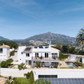 - This charming house for sale is ideally situated on the edge of the hill between Nueva Andalucía and San Pedro, offering stunning panoramic views to the east, south, and west. Located on one of the most sought-after streets in Nueva Andalucía, the home benefits from both a peaceful setting and proximity to all the conveniences of the area, including world-class golf courses, renowned restaurants, shopping, beaches and much more. As you enter the home, you’re welcomed into a bright and airy hallway with large windows that flood the space with natural light. The hallway also features built-in wardrobes. Straight ahead, the open-plan living and dining area creates a spacious and inviting environment, highlighted by a beautiful open fireplace and a striking staircase. The views from this level are breathtaking, with sweeping vistas to the west. The living room leads to a well-sized terrace, perfect for outdoor dining and relaxation, with ample space for both a dining area and a cozy lounge. On this level, you’ll also find a newly refurbished kitchen, a versatile office/bedroom, and a modern bathroom. Additionally, there is access to the garage, which accommodates one car. The lower floor features three comfortable double bedrooms and three bathrooms. There is also a practical laundry room, additional storage space, and plenty of room for customization—whether you want to create a gym, home cinema, or simply need extra storage. This level also provides access to the private garden and pool area, where you can unwind in peace. The garden includes a small vegetable plot, fruit trees, and a covered terrace, ideal for enjoying the Mediterranean lifestyle. The location of this property offers the best of both worlds: a tranquil retreat with unrivaled views and easy access to the vibrant lifestyle of Nueva Andalucía, making it an exceptional opportunity in one of the most desirable areas of Marbella.