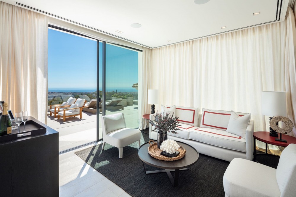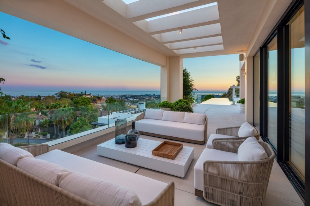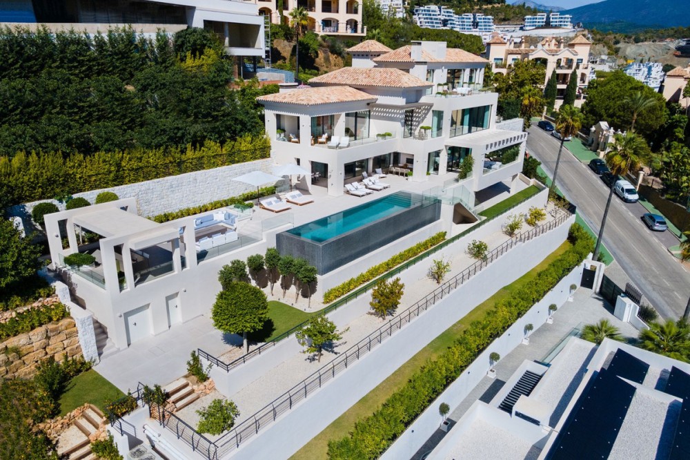 - Bespoke and brand new contemporary home, situated on one of the last remaining available plots in El Herrojo, within the La Quinta Golf & Country Club resort, offering maximum accommodation in a prime location. The villa has been built and design to the highest quality specifications, ensuring a resort style living with epic views to the Mediterranean Sea. Villa Leo 2 is a true cutting-edge home of majestic proportions and pristine interiors. The villa boasts outstanding luxury features including: high ceilings, floor-to-ceiling windows, expansive terraces, infinity swimming pool, outdoor kitchen and epic sunset and sea views. The villa welcomes you into an impressive entrance hall, leading to a spacious and light-filled living room. The villa offers an open-plan layout, where living room, dining area and kitchen are connected. The dining area overlooks a magnificent indoor patio. Every bedroom is unique and cosy, with unparalleled sea and mountain views. The master suite is a comfortable and cosy space, with a large bedroom, elegant bathroom, impressive walk-in closet and a breathtaking sunny terrace. The property affords a state-of-the-art basement space with TV room, additional kitchen, fully equipped gym, sauna, entertainment area and cinema room. This is truly one of the most impressive luxury homes available in La Quinta.