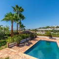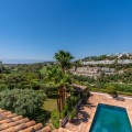 - SPECTACULAR VILLA WITH LARGE PLOT IN GATED COMMUNITY WITH 24-HOUR SECURITY Impressive villa, located in an exclusive and secure area between Nueva Andalucía and La Quinta, just minutes from Puerto Banús and San Pedro de Alcántara, close to all kinds of services (International School, restaurants, supermarkets, etc.) and surrounded by the best golf courses in the area: La Quinta Golf, Los Naranjos Golf, Aloha Golf, etc. Large Mediterranean-style villa, spread over a total of four floors. On the main floor, the property features a spacious living room with a dining area, two bedrooms with en-suite bathrooms, a large kitchen, and a guest toilet. The upper floor features three large bedrooms with en-suite bathrooms. The master bedroom also has a dressing area and a terrace with beautiful views of the sea, the golf course, and the mountains. The upper floor of the property offers an office area. On the basement level, the property offers a two-car garage, a separate apartment with a bedroom, bathroom, living room, and kitchen. There is also a spa area, a wine cellar, a machine room, a large storage room, and more. Externally, the property boasts a large 2,750 m2 plot with a private pool, a spacious garden, and parking for several cars. Located within an exclusive and private residential area with 24-hour security. An ideal property for clients who want to enjoy a very secure property with a large plot and lots of potential, located in one of the most sought-after areas of Marbella.