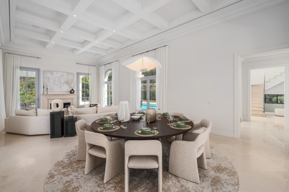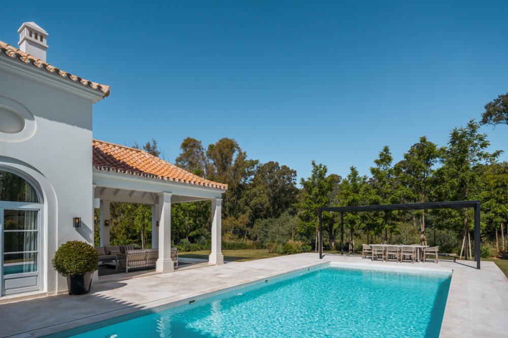 - Villa Valora is an exceptional villa for sale within La Cerquilla, an esteemed neighborhood in Nueva Andalucía's renowned Golf Valley. Completed in 2023, this newly constructed villa represents a harmonious blend of modern design and classical influences inspired by French provincial architecture. Its expansive 475 square meters of built area, along with a refined 78 square meter terrace, offer ample space for relaxation and alfresco dining. The villa offers four luxurious bedrooms, each designed with an en-suite bathroom for enhanced privacy and comfort for family members and guests. A thoughtfully placed guest toilet serves the common areas, adding convenience during social gatherings. With a layout that skillfully balances grandeur and intimacy, Villa Valora creates a welcoming atmosphere throughout its impressive living spaces. Attention to detail defines this property, with its design under the guidance of a renowned architect ensuring that the villa seamlessly integrates timeless classical elements with contemporary amenities. The villa is equipped with prestigious features, including a state-of-the-art alarm system, an elegantly designed barbeque area, and a relaxing sauna, providing a cohesive combination of security, luxury, and comfort. The modern open-plan kitchen features high-end appliances and chic contemporary furnishings, enhancing the overall elegance of the home. Its exterior is equally captivating, facing southwest to maximize natural light and offer breathtaking sunset views. The expansive terrace serves as the perfect vantage point to overlook the private swimming pool, providing serene moments spent in the embrace of nature. The villa's surroundings echo the charm of southern France, with its beautiful courtyards adorned with olive trees and lavender, and meticulously manicured gardens contributing to a resort-like atmosphere. Villa Valora enjoys a strategic location in Nueva Andalucía, a coveted residential area known for its lush landscapes and tranquil yet vibrant ambiance, often referred to as the "Golf Valley" for its abundance of golf courses. The villa is positioned within a serene cul-de-sac, just a short drive away from essential amenities such as shops, schools, and the beach. This location offers both privacy and convenience, making it ideally suited for year-round living or as a luxurious vacation home. Proximity to the renowned Los Naranjos Golf course makes Villa Valora a dream home for golf enthusiasts, while its easy access to Marbella’s variety of recreational and cultural offerings ensures that residents will never experience a dull moment. Nearby, Las Brisas Golf Club and Aloha Golf Club offer manicured greens and diverse challenges for golf aficionados. The community's charm extends to the coast, with the famous Puerto Banús Beach within easy reach, offering sandy shores perfect for sunbathing and water sports, complemented by popular beach clubs like Ocean Club and La Sala by the Sea. Meanwhile, dining options within Nueva Andalucía are plentiful, with establishments such as Mosh Fun Kitchen offering eclectic menus and vibrant atmospheres, Casa Italia providing a traditional Italian dining experience, and Magna Café offering sophistication paired with stunning views. Shopping needs are well catered for with Centro Plaza, a shopping area featuring boutiques, cafes, and services, and just a stone's throw away, El Corte Inglés in Puerto Banús offers a comprehensive selection of high-end retail brands. Educational pursuits are accommodated by reputable institutions such as Aloha College, known for its British curriculum and excellent academic programs, and the International School of Marbella, with its focus on personal development and creativity. Transport options ensure connectivity to Marbella and beyond, with regular bus services and the convenience of the A-7 motorway providing links to major parts of the Costa del Sol. For residents who seek peace of mind, many sections of Nueva Andalucía offer enhanced security measures, particularly in gated communities, making it a favored choice for those desiring privacy and safety. Parking at Villa Valora is simplified by a spacious carport for two vehicles, enhancing practicality without compromising elegance. Additional storage solutions are thoughtfully integrated, ensuring living areas remain uncluttered and always ready to impress. Residing in Villa Valora is about more than enjoying a beautifully designed home; it is an invitation to embrace a lifestyle of refinement and sophistication in one of Marbella’s most sought-after locations. This property is a reflection of a profound understanding of sophisticated living, offering privacy, and subtle luxury with thoughtfully considered architectural lineage and a prime locale. Nueva Andalucía, and by extension, Villa Valora, offers a coveted blend of tranquility, luxury, and accessibility, making it an attractive place for families, retirees, and even international celebrities. Beyond being a home or a residence, Villa Valora is a lifestyle promise, wrapped in the sun-drenched, laid-back opulence of Marbella. For those searching for exclusivity, comfort, and classical elegance on the Costa del Sol, Villa Valora stands as an unmatched opportunity. It represents the epitome of luxury living in a venue that embodies grandeur while welcoming residents into its warm embrace. Experience all that Villa Valora offers by opting for a sophisticated lifestyle that balances comfort and elegance in one of the most desirable locales in Marbella.