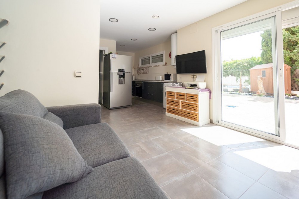 - Charming Detached House with Sea Views in Torreblanca Located in a quiet and well-established residential area of Torreblanca, this detached property offers an excellent opportunity to create a bespoke home in one of the most peaceful corners of Fuengirola. Set on a generous plot with a private garden and swimming pool, the house enjoys panoramic views of the Mediterranean Sea from its spacious terrace. The property features two bedrooms and three full bathrooms, providing comfort and practicality. It also includes two fully equipped kitchens, offering great flexibility for multi-generational living or entertaining. The lower level presents clear potential for conversion into a self-contained studio or guest apartment, ideal for visitors or as a rental unit. While the home would benefit from external refurbishment and some interior updates, it boasts quality carpentry and a solid structure, making it a fantastic base for modernisation. With its peaceful location, lovely sea views, and generous layout, this property offers a unique investment or lifestyle opportunity just minutes from the beach, transport connections, and all local amenities.