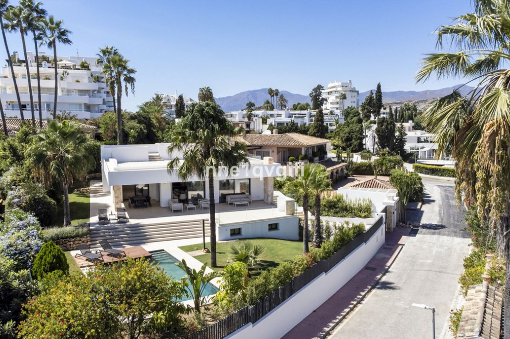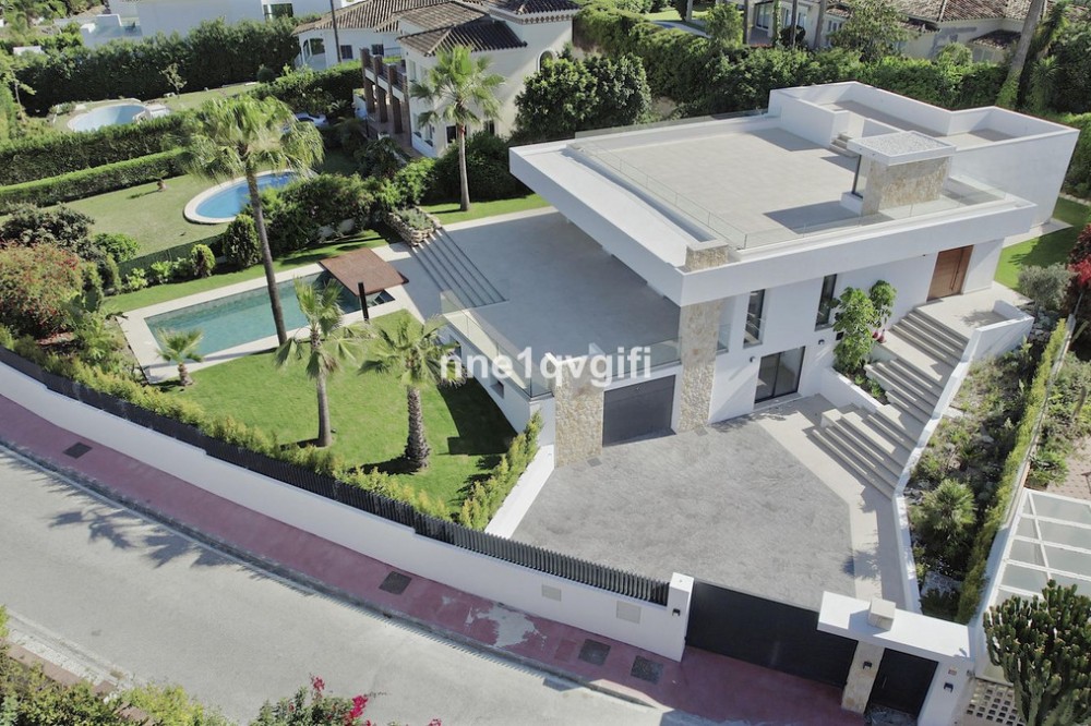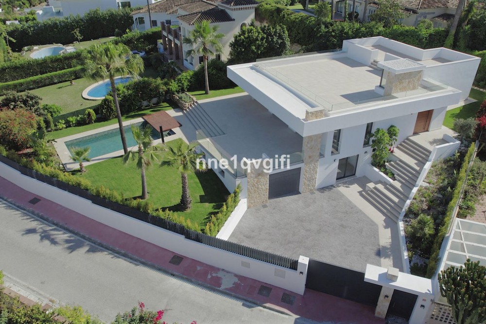 - Easy viewings! Keys in the office. Modern Villa for Sale in Guadalmina with roof terrace Discover this exclusive, luxury villa in Guadalmina, one of the most sought-after residential areas on the Costa del Sol. With its modern architecture, high-quality finishes, and breathtaking views, this property offers the ultimate in Mediterranean living. Villa Features • 4 spacious, bright bedrooms • 4 modern bathrooms + guest toilet • Open-plan kitchen with a cooking island and top-of-the-line appliances • Spacious living and dining room with direct access to the terrace • Private pool and beautifully landscaped garden • Large roof terrace with sea views • Multiple terraces, partially covered Extra luxury • Fully furnished & move-in ready • Illuminated built-in wardrobes with LED features • Alarm and security system • Garage and space for several cars • Charging point for an electric car • Additional parking behind the gate Location The villa is within walking distance of the prestigious Guadalmina Golf Club and a short distance from the beach. An ideal location for those who want to combine peace, luxury, and recreation. Why choose this villa? • Exclusive design and high-quality finishes • Completely move-in ready – enjoy immediately • Perfect as a family home, holiday rental, or investment Contact us today for more information or a private viewing. Experience the best of the Costa del Sol in Guadalmina.