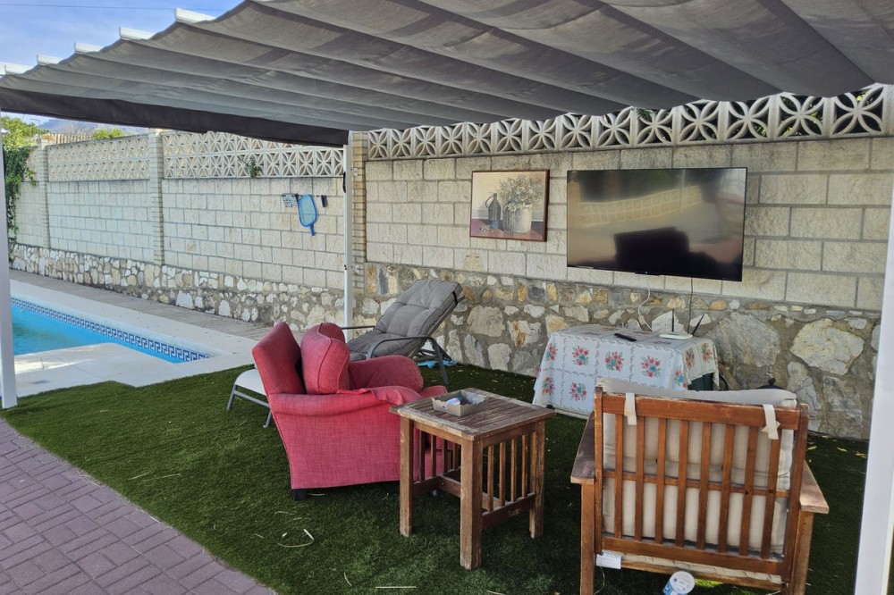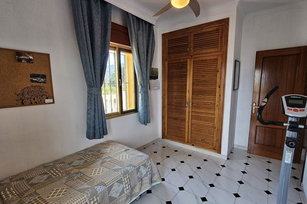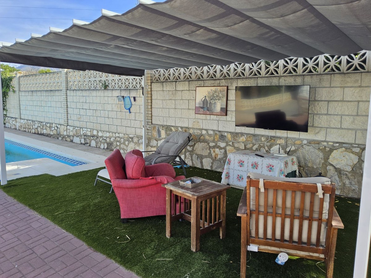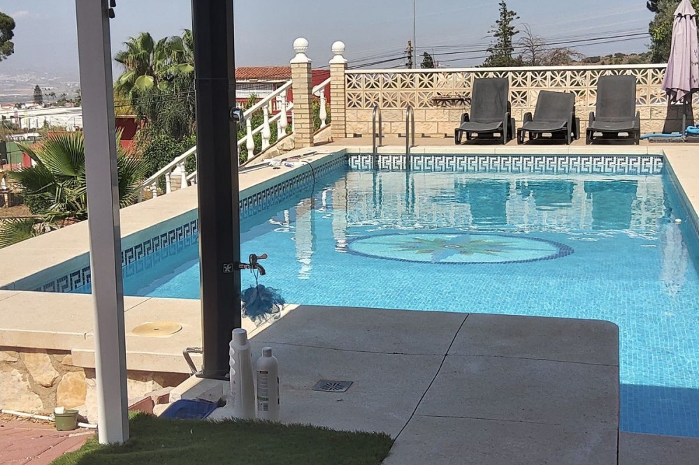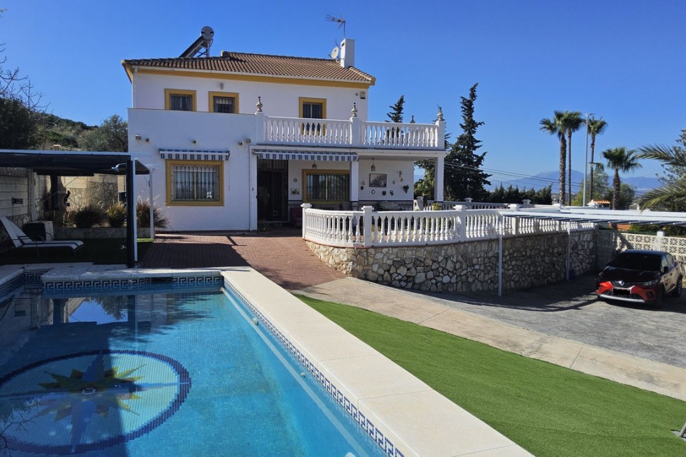 - Detached Villa, Alhaurín de la Torre, Costa del Sol. 4 Bedrooms, 2 Bathrooms, Built 248 m², Garden/Plot 1567 m². A detached four bedroom, two level house in the sought-after area of Pinos de Alhaurin with a large plot of 1567m2. The villa situated in lower Pinos de Alhaurín On the lower level, you will find one bedroom, a bathroom, a kitchen with a utility area, and a living room. On the top level you will find three more bedrooms and another bathroom. All bedrooms on the top level have access to a balcony. All bedrooms have built-in wardrobes. All windows on the lower level are double glazed. The two main bedrooms have hot and cold air-conditioning units, as does the living room. The living room is also equipped with an inset pellet stove. The house is set in an elevated position and from the front porch and poolside area there are spectacular views of the mountains and towards the City of Malaga. The house is served by super fast fibre optic Internet. The garden has many fruit trees with automatic irrigation (orange, grapefruit, lemon, mandarin, apple, avocados), a 9m x 4.5m swimming pool, and three large storage areas. There are two covered parking areas with parking for many vehicles. Pinos de Alhaurín is located just 11km from the beautiful beaches of the Costa del Sol, 13km from Malaga Airport, and 7km from the fabulous Lauro golf course. The town of Alhaurín de la Torre has plenty of bars and inexpensive restaurants. There are beautiful parks like the Jardin Oriental Bienquieridoa, a small, well-kept Japanese garden. The town is surrounded by mountains with lots of opportunities for hiking or walking. Setting : Close To Shops, Close To Town, Close To Schools, Close To Forest, Urbanisation. Condition : Good. Pool : Private. Climate Control : Air Conditioning, Fireplace. Views : Mountain, Country, Panoramic, Garden, Pool, Urban. Features : Fitted Wardrobes, Private Terrace, Storage Room, Utility Room, Double Glazing, Fiber Optic. Kitchen : Fully Fitted. Garden : Private, Landscaped, Easy Maintenance. Security : Entry Phone. Parking : Covered, Open, More Than One, Private. Utilities : Electricity, Drinkable Water, Telephone. Category : Resale.
