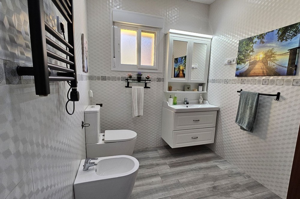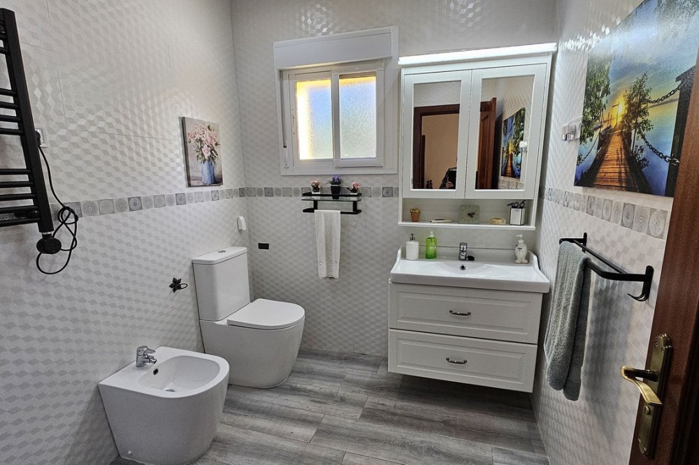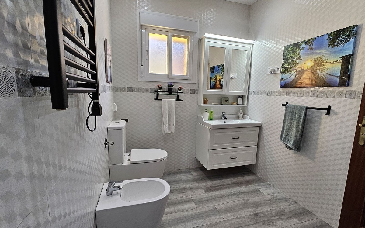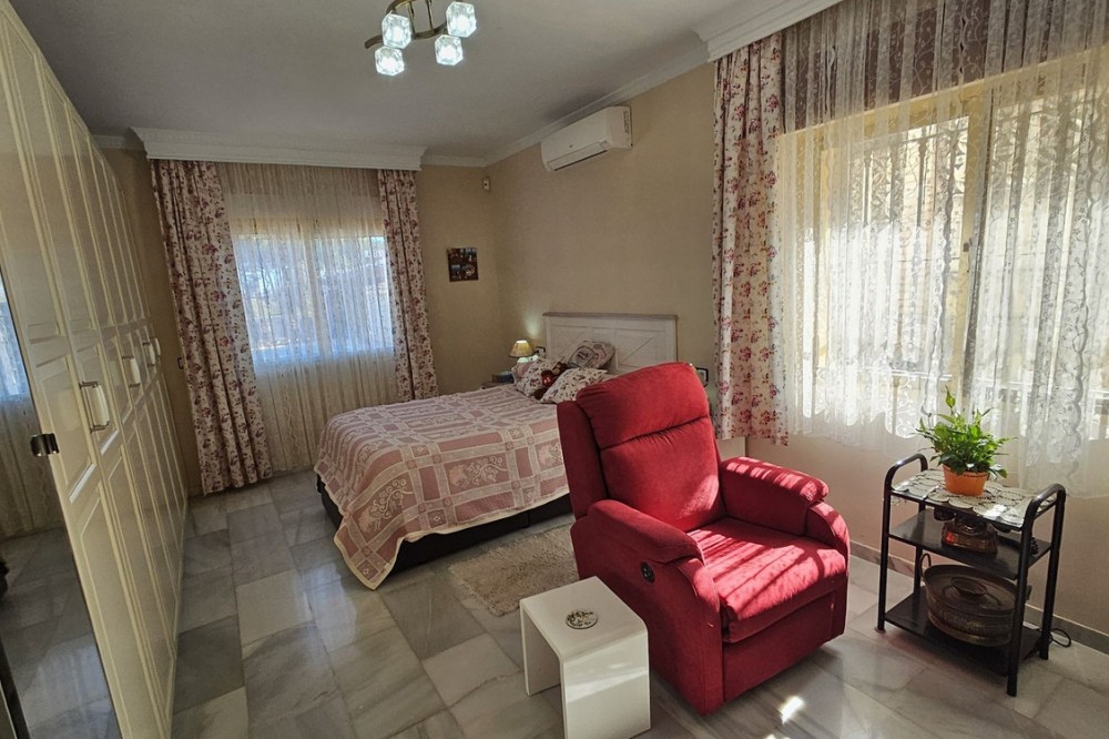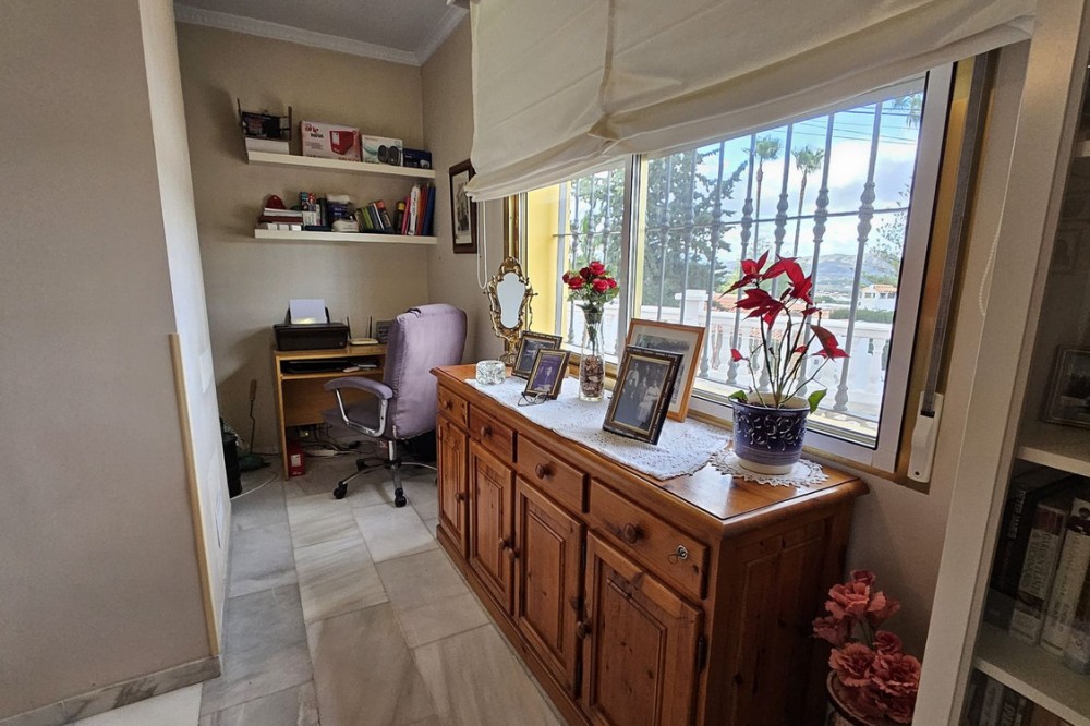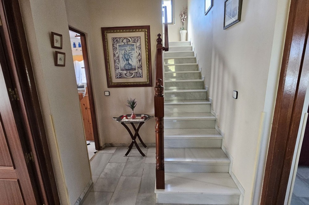 - Detached Villa, Alhaurín de la Torre, Costa del Sol. 4 Bedrooms, 2 Bathrooms, Built 248 m², Garden/Plot 1567 m². A detached four bedroom, two level house in the sought-after area of Pinos de Alhaurin with a large plot of 1567m2. The villa situated in lower Pinos de Alhaurín On the lower level, you will find one bedroom, a bathroom, a kitchen with a utility area, and a living room. On the top level you will find three more bedrooms and another bathroom. All bedrooms on the top level have access to a balcony. All bedrooms have built-in wardrobes. All windows on the lower level are double glazed. The two main bedrooms have hot and cold air-conditioning units, as does the living room. The living room is also equipped with an inset pellet stove. The house is set in an elevated position and from the front porch and poolside area there are spectacular views of the mountains and towards the City of Malaga. The house is served by super fast fibre optic Internet. The garden has many fruit trees with automatic irrigation (orange, grapefruit, lemon, mandarin, apple, avocados), a 9m x 4.5m swimming pool, and three large storage areas. There are two covered parking areas with parking for many vehicles. Pinos de Alhaurín is located just 11km from the beautiful beaches of the Costa del Sol, 13km from Malaga Airport, and 7km from the fabulous Lauro golf course. The town of Alhaurín de la Torre has plenty of bars and inexpensive restaurants. There are beautiful parks like the Jardin Oriental Bienquieridoa, a small, well-kept Japanese garden. The town is surrounded by mountains with lots of opportunities for hiking or walking. Setting : Close To Shops, Close To Town, Close To Schools, Close To Forest, Urbanisation. Condition : Good. Pool : Private. Climate Control : Air Conditioning, Fireplace. Views : Mountain, Country, Panoramic, Garden, Pool, Urban. Features : Fitted Wardrobes, Private Terrace, Storage Room, Utility Room, Double Glazing, Fiber Optic. Kitchen : Fully Fitted. Garden : Private, Landscaped, Easy Maintenance. Security : Entry Phone. Parking : Covered, Open, More Than One, Private. Utilities : Electricity, Drinkable Water, Telephone. Category : Resale.