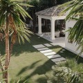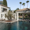 - This outstanding property is a refined and soulful villa, thoughtfully crafted by renowned designers Puroform. Nestled in a prime location in Nueva Andalucía, this exquisite home perfectly blends sophisticated living with leisure and entertainment, offering a tranquil retreat in the heart of the Golf Valley. Recently built, the villa showcases outstanding craftsmanship and embraces a timeless French provincial aesthetic with elegant architectural features. Covered porches provide shaded lounge areas ideal for relaxing under the Mediterranean sun, while expansive terraces invite alfresco dining and laid-back social gatherings. A sunken chill-out area with a custom-designed bar beside the private pool creates the perfect setting for unforgettable summer evenings. At the heart of the home is a beautifully tailored kitchen, marrying functionality with high-end design. The open-plan living and dining area is a masterclass in contemporary interior design, featuring curated furnishings, a soothing neutral palette, and warm wooden details. High ceilings and direct access to the terrace enhance the indoor-outdoor flow, infusing the space with natural light and an airy ambiance. Villa Oasis is equipped with an array of bespoke amenities to elevate everyday living — including a private home office, a luxurious spa, and a fully equipped gym — making this villa a truly exceptional family residence designed for comfort, wellness, and effortless elegance.
