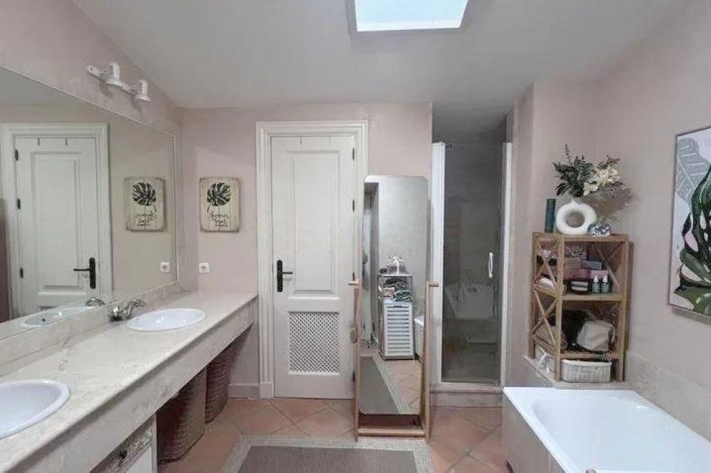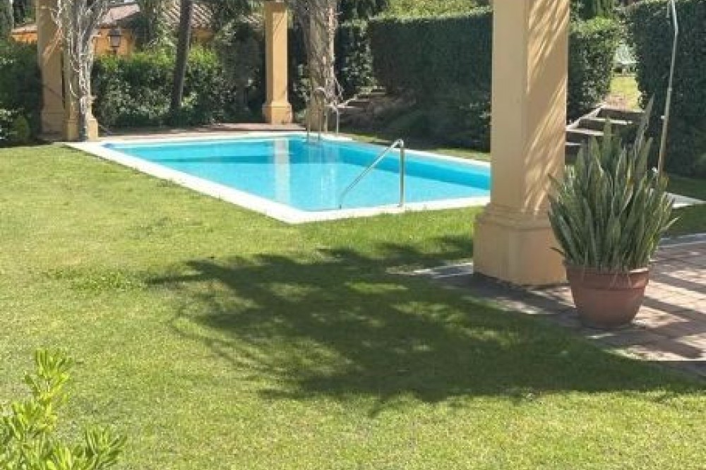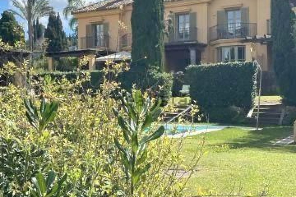 - We present to you a magnificent villa in Sotogrande, one of the most exclusive and privileged areas! Situated in an unbeatable location, this home offers breathtaking views of the golf course and a beautiful lake. creating an environment of peace and natural beauty. The house has 320 square meters built and 240 square meters of usable space, in addition to a green area and a private plot of 90 square meters, perfect for enjoying the outdoors and tranquility. Spread over three floors, the house features three bright bedrooms and four bathrooms, ideal for the comfort of the whole family. The terrace is perfect for sharing unforgettable moments with family and friends, while several balconies offer spectacular views of the surrounding area. It also includes a spacious parking space and storage room for your convenience. The communal swimming pool invites you to relax and enjoy the area's pleasant climate. This home features modern amenities, including gas heating and underfloor heating, as well as hot and cold air conditioning, ensuring comfort in any season. Without a doubt, this is a unique opportunity to live in a privileged environment, surrounded by nature, golf courses and the Mediterranean Sea.