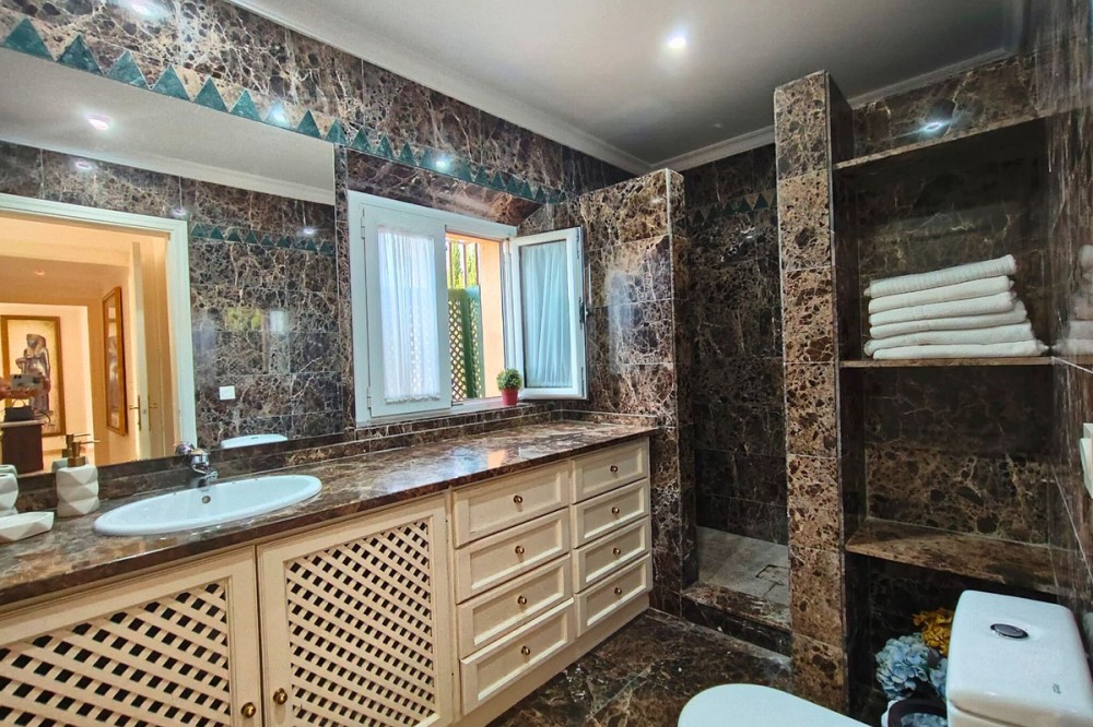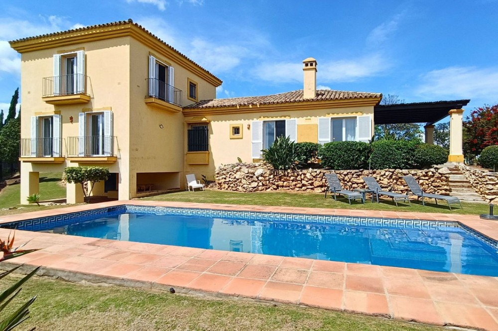 - Charming 3-Bed Villa in Sotogrande Alto Nestled in the highly sought-after area of Sotogrande Alto, this elegant 3-bedroom, 3-bathroom villa with an additional guest toilet, offers the perfect blend of comfort, privacy, and Mediterranean lifestyle. Ideally located just minutes from world-class golf courses, the prestigious Sotogrande International School, the vibrant Marina, and within walking distance of the luxurious SO/ Sotogrande Spa & Golf Resort. Set on a generous 1,564 m² plot, the property boasts a well-maintained garden with a private swimming pool, perfect for relaxing or entertaining under the sun. The terraces create ideal spaces for enjoying outdoor living all year round. The villa welcomes you through a charming, tastefully decorated Andalusian-style patio that sets the tone for the warmth and character found inside. The home is distributed over two levels, with the main living areas and two comfortable bedrooms with private bathrooms conveniently located on the entrance level. The upper floor is reserved for a generous master suite featuring ample built-in wardrobes and a luxurious en-suite bathroom with both a bathtub and a shower. On the entrance level, you’ll also find a bright and airy living room with a cozy fireplace and dining area, as well as a fully equipped kitchen. Both the kitchen and living room provide direct access to the terraces, creating a seamless flow between indoor and outdoor living spaces. Whether you're looking for a permanent residence or a luxurious holiday retreat, this villa offers a rare opportunity to enjoy life in one of the most exclusive areas of the Costa del Sol.