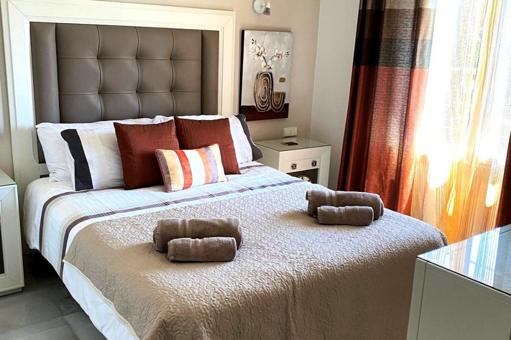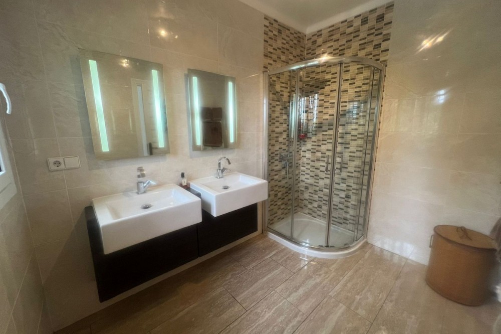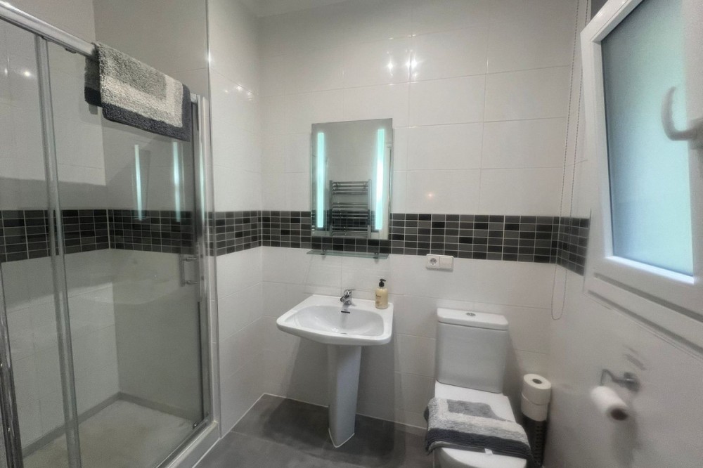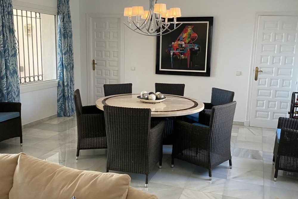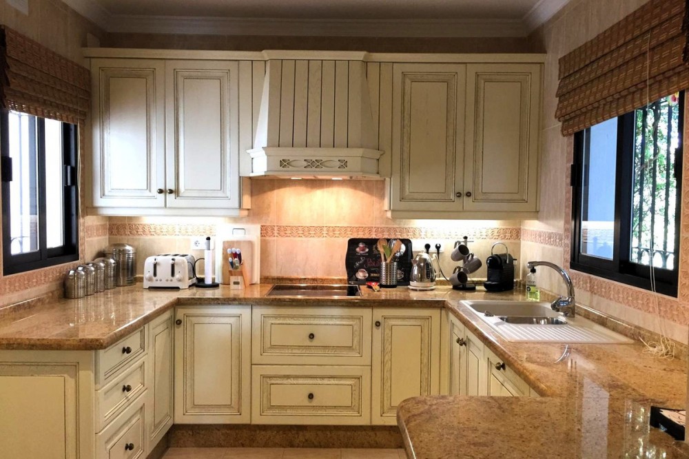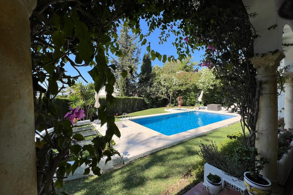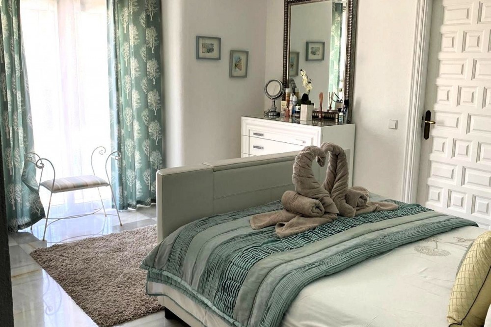 - Set on a generous double plot in Paraiso Alto, this fully renovated 4-bedroom, 3-bathroom bungalow offers an exceptional blend of space, style, and scenery. Ideally south-facing, the property enjoys panoramic sea views from the garden as well as picturesque golf course views, creating a peaceful and luxurious atmosphere. Inside, the home boasts a bright and modern layout with open-plan living areas, air conditioning, and a sleek contemporary kitchen. All bedrooms are spacious, and the bathrooms have been upgraded to a high standard. Security and comfort are paramount, with a fully integrated alarm system and external surveillance cameras already in place. The double plot not only ensures privacy and expansive outdoor space, but also offers potential for future expansion (plans available), additional landscaping, or recreational features like a pool or guest annex. This property is a rare opportunity — perfect as a permanent residence, a stylish second home, or a smart investment.