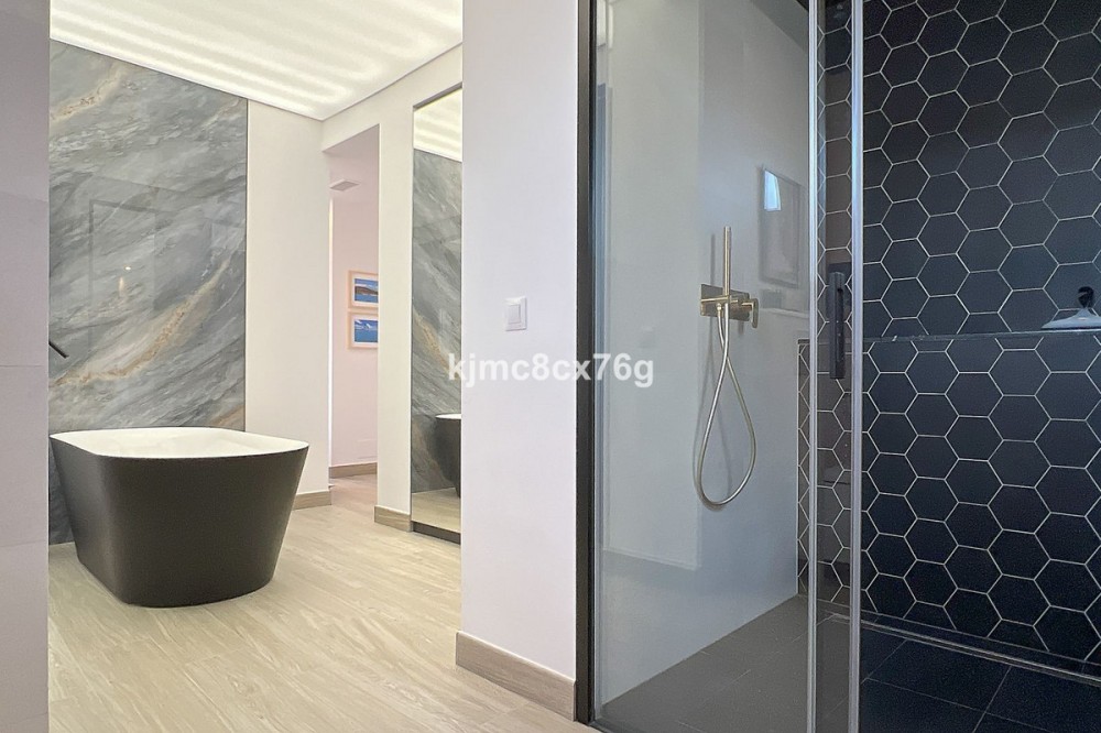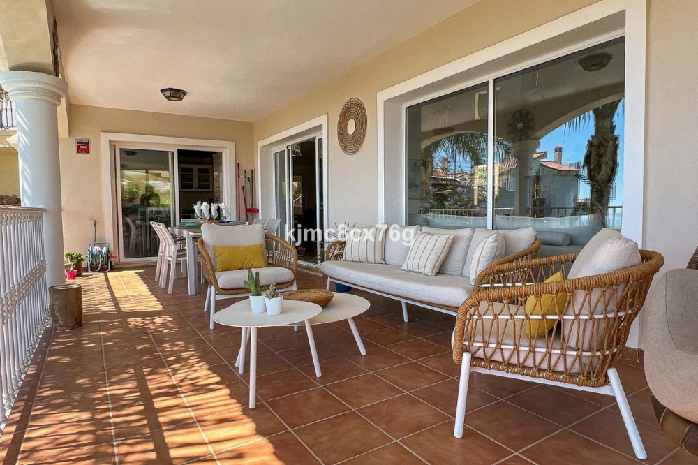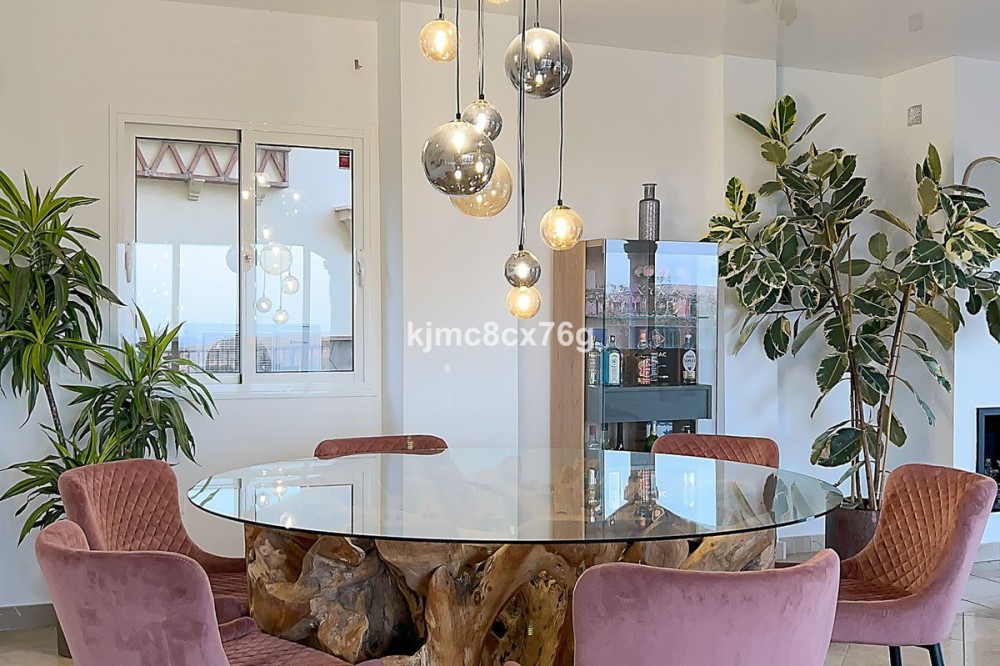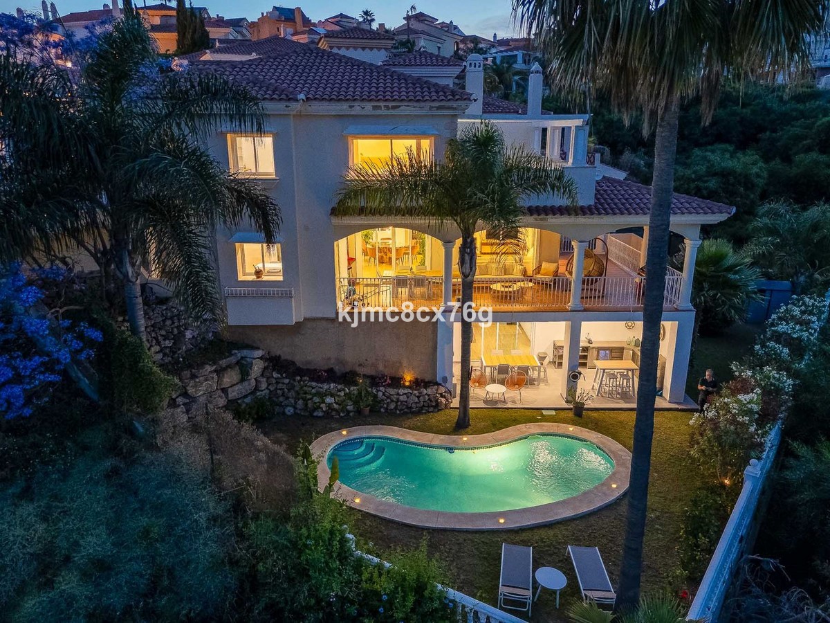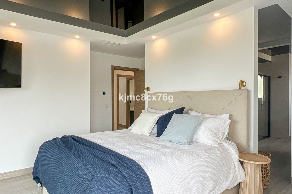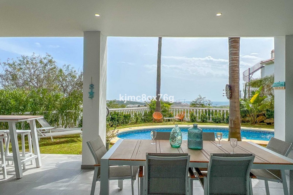 - FOR SALE – STUNNING LUXURY VILLA IN THE UPPER PART OF RIVIERA DEL SOL Set within an exclusive gated community of just 25 properties, this spectacular detached villa has been recently renovated to the highest standards and tastefully decorated throughout. Ideally located just 2 minutes from the prestigious Calanova Golf Club and 5 minutes from La Cala de Mijas, its beaches, restaurants, and amenities. Layout: Street level: Elegant entrance porch, spacious entrance hall, guest toilet, office, fully fitted kitchen, and open-plan living-dining area with direct access to a breathtaking glazed terrace with panoramic sea views and abundant natural light. First floor: Rest area with two double bedrooms, built-in wardrobes, and private terraces. The master suite is a haven of luxury, featuring a private terrace with jacuzzi, walk-in closet, and a spa-style bathroom designed for total relaxation. Garden level: A true entertainment floor for family and guests, with home cinema, bar and wine cellar, gym, full bathroom, laundry room, storage space, and two additional bedrooms with direct garden access. The outdoor terrace includes a full kitchen and industrial BBQ. The garden surrounds the property, crowned by a generous private pool. Features and extras: Macael marble flooring, white PVC windows with automatic shutters, high ceilings, fireplace, A/C and heating with independent systems, alarm with cameras, jacuzzi, home cinema, outdoor kitchen, wine cellar, 3,000L water tank and much more. Don’t miss this opportunity – this is your dream home. Live in luxury and comfort in a truly exceptional setting