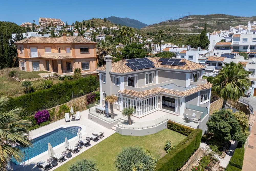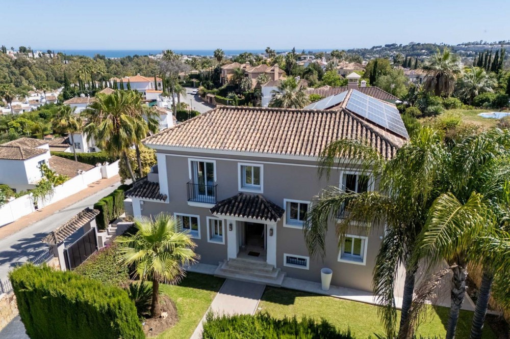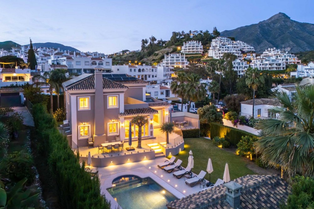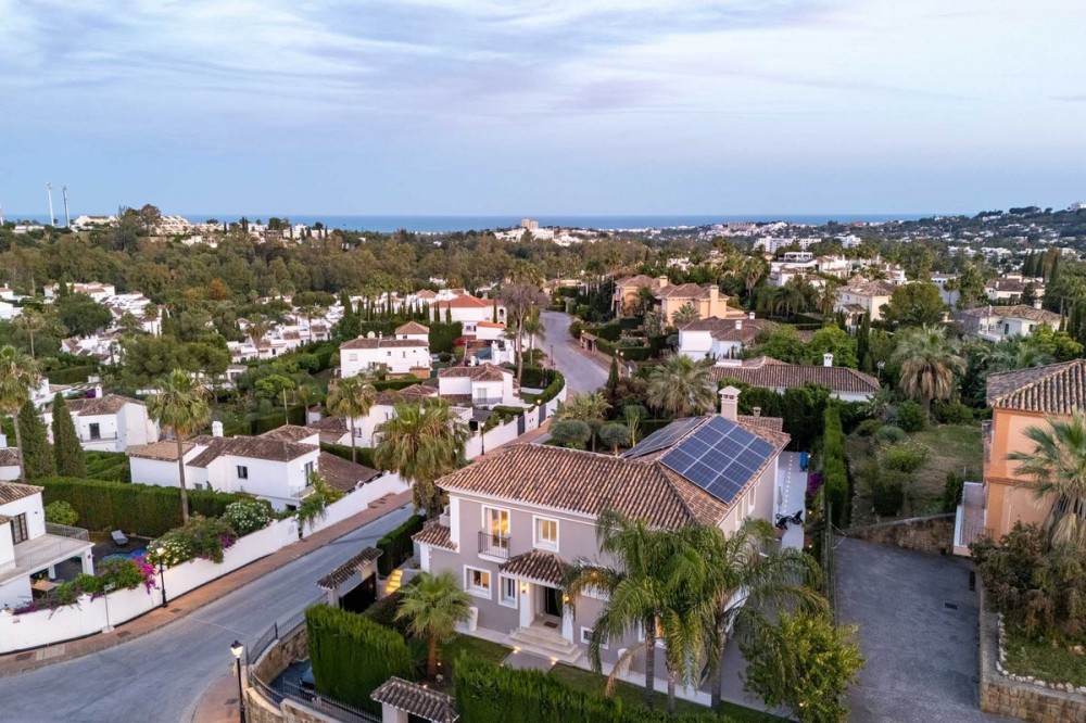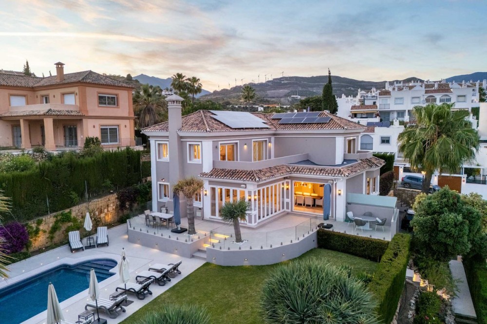 - Luxurious Six- Bedroom Villa with sea Views in the Golf Valley of Nueva Andalucia, Marbella This impressive luxury villa, exclusively available through our sole agency, is situated in the desirable neighbourhood of Nueva Andalucia. Boasting a substantial built area of 510m² on the best Plot with a generous 1,200m² very high privacy factor , the property offers six spacious bedrooms, five bathrooms (four en-suite), and an additional guest toilet, designed to accommodate the highest standards of modern HIGH Quality family living. The villa’s interior is meticulously finished, featuring marble floors with Under Floor heating all over the house, a grand living room with a fireplace, and a separate dining room. The fully fitted kitchen is complemented by a utility room and a kitchenette, ideal for culinary enthusiasts. Entertainment is at the heart of this home, with a dedicated cinema room, games room, Dolby Stereo Surround system, and several terraces—both covered and uncovered—providing mountain, sea, garden, and pool views. Additional spaces include an office room and ample storage, ensuring practicality alongside luxury. Comfort and convenience are paramount, with air conditioning, individual A/C units, electric blinds, double glazing, and an automatic irrigation system for the landscaped private garden. The villa is equipped with Solar panels, an Alarm system, Domotic system, surveillance cameras, armored door, and video entrance for enhanced security. The property also benefits from high-speed internet, satellite TV, and telephone lines, supporting modern connectivity needs. Externally, residents can enjoy a private swimming pool, barbecue area, and a private garage. The location is ideally close to a range of amenities, transport links, international schools, shops, the port, golf courses, children’s playgrounds, and the beach, making it perfect for families and those seeking an exclusive lifestyle in Marbella. The villa is also handicap accessible and allows pets, ensuring comfort and inclusivity for all potential residents. If you are looking for a Luxury Home, Location, Highest Quality, Privacy , views and/or Investment then you are on the right page... Please don't hesitate to contact us for a live Virtual video tours.