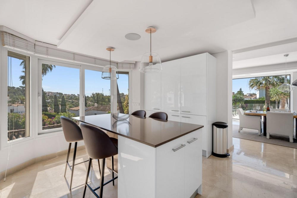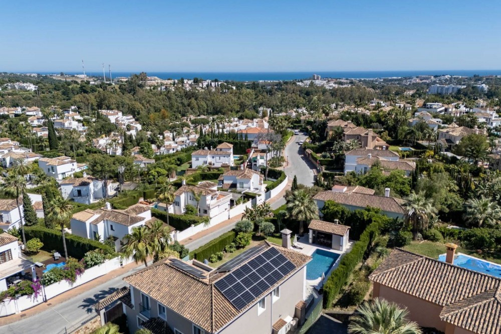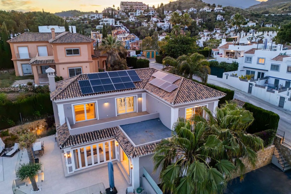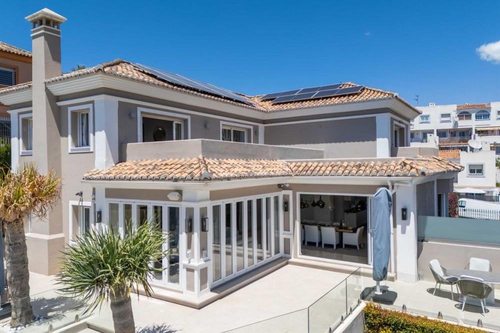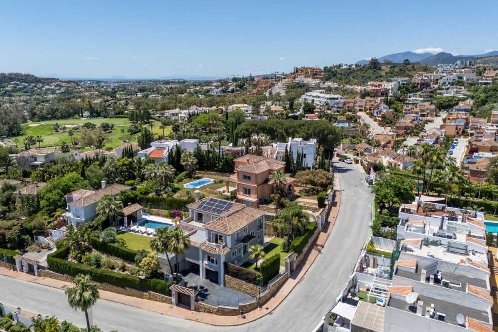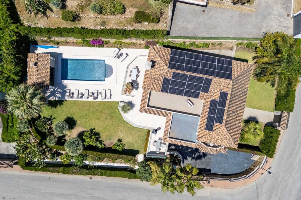 - Luxurious Six- Bedroom Villa with sea Views in the Golf Valley of Nueva Andalucia, Marbella This impressive luxury villa, exclusively available through our sole agency, is situated in the desirable neighbourhood of Nueva Andalucia. Boasting a substantial built area of 510m² on the best Plot with a generous 1,200m² very high privacy factor , the property offers six spacious bedrooms, five bathrooms (four en-suite), and an additional guest toilet, designed to accommodate the highest standards of modern HIGH Quality family living. The villa’s interior is meticulously finished, featuring marble floors with Under Floor heating all over the house, a grand living room with a fireplace, and a separate dining room. The fully fitted kitchen is complemented by a utility room and a kitchenette, ideal for culinary enthusiasts. Entertainment is at the heart of this home, with a dedicated cinema room, games room, Dolby Stereo Surround system, and several terraces—both covered and uncovered—providing mountain, sea, garden, and pool views. Additional spaces include an office room and ample storage, ensuring practicality alongside luxury. Comfort and convenience are paramount, with air conditioning, individual A/C units, electric blinds, double glazing, and an automatic irrigation system for the landscaped private garden. The villa is equipped with Solar panels, an Alarm system, Domotic system, surveillance cameras, armored door, and video entrance for enhanced security. The property also benefits from high-speed internet, satellite TV, and telephone lines, supporting modern connectivity needs. Externally, residents can enjoy a private swimming pool, barbecue area, and a private garage. The location is ideally close to a range of amenities, transport links, international schools, shops, the port, golf courses, children’s playgrounds, and the beach, making it perfect for families and those seeking an exclusive lifestyle in Marbella. The villa is also handicap accessible and allows pets, ensuring comfort and inclusivity for all potential residents. If you are looking for a Luxury Home, Location, Highest Quality, Privacy , views and/or Investment then you are on the right page... Please don't hesitate to contact us for a live Virtual video tours.
