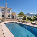 - Luxurious Six- Bedroom Villa with sea Views in the Golf Valley of Nueva Andalucia, Marbella This impressive luxury villa, exclusively available through our sole agency, is situated in the desirable neighbourhood of Nueva Andalucia. Boasting a substantial built area of 510m² on the best Plot with a generous 1,200m² very high privacy factor , the property offers six spacious bedrooms, five bathrooms (four en-suite), and an additional guest toilet, designed to accommodate the highest standards of modern HIGH Quality family living. The villa’s interior is meticulously finished, featuring marble floors with Under Floor heating all over the house, a grand living room with a fireplace, and a separate dining room. The fully fitted kitchen is complemented by a utility room and a kitchenette, ideal for culinary enthusiasts. Entertainment is at the heart of this home, with a dedicated cinema room, games room, Dolby Stereo Surround system, and several terraces—both covered and uncovered—providing mountain, sea, garden, and pool views. Additional spaces include an office room and ample storage, ensuring practicality alongside luxury. Comfort and convenience are paramount, with air conditioning, individual A/C units, electric blinds, double glazing, and an automatic irrigation system for the landscaped private garden. The villa is equipped with Solar panels, an Alarm system, Domotic system, surveillance cameras, armored door, and video entrance for enhanced security. The property also benefits from high-speed internet, satellite TV, and telephone lines, supporting modern connectivity needs. Externally, residents can enjoy a private swimming pool, barbecue area, and a private garage. The location is ideally close to a range of amenities, transport links, international schools, shops, the port, golf courses, children’s playgrounds, and the beach, making it perfect for families and those seeking an exclusive lifestyle in Marbella. The villa is also handicap accessible and allows pets, ensuring comfort and inclusivity for all potential residents. If you are looking for a Luxury Home, Location, Highest Quality, Privacy , views and/or Investment then you are on the right page... Please don't hesitate to contact us for a live Virtual video tours.