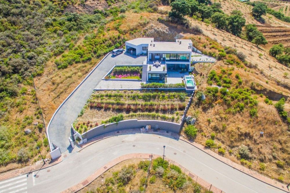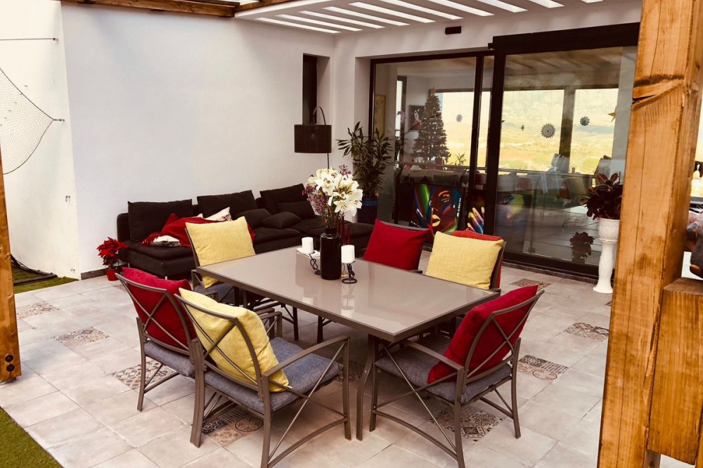- Elegant Four-Bedroom Villa in La Cala Golf Golf, Mijas Costa. Situated in the prestigious area of La Cala Golf in Mijas Costa, Malaga, this exquisite villa presents a harmonious blend of luxury and comfort. Boasting a spacious built area of 312m² on an expansive plot of 1,836m², this property is a true gem for those seeking a serene yet conveniently located residence. The villa features four generously sized bedrooms, including one with an en-suite bathroom, and a total of three bathrooms, ensuring ample space and privacy for family and guests alike. The villa’s interior is thoughtfully designed to cater to modern living. A fully fitted kitchen equipped with high-quality appliances is complemented by a utility room and a separate laundry area, providing practical solutions for daily needs. The living room, adorned with a fireplace, offers a cosy retreat, while the dining room is perfect for hosting gatherings. Additional features such as porcelain floors, fitted wardrobes, and individual air conditioning units in each room enhance the comfort and functionality of the home. The property is equipped with advanced amenities including electric blinds, video entrance, and fibre optic internet, ensuring convenience and security. Outdoor living is equally impressive, with a private garden and jacuzzy with a portable pool but there are 2 projects to build a proper 15m x 4m swimming pool, and a terrace area spanning 41m² that offers panoramic views of the surrounding mountains and countryside. The property also includes a covered terrace, a ground floor patio, and an uncovered terrace, providing multiple spaces for relaxation and entertainment. A private garage adds to the convenience, while the presence of a barbeque and jacuzzi further elevates the outdoor experience. The villa’s location is ideal, being close to amenities such as shops, schools, and playgrounds, as well as proximity to the beach, golf courses, and the town centre. This property is in excellent condition and features additional highlights like security shutters, glass doors, and a storage room. Pets are welcome, making it a perfect choice for families. With its combination of elegance, modern amenities, and a prime location, this villa in Mijas Golf offers a unique opportunity to enjoy a luxurious lifestyle amidst stunning natural surroundings